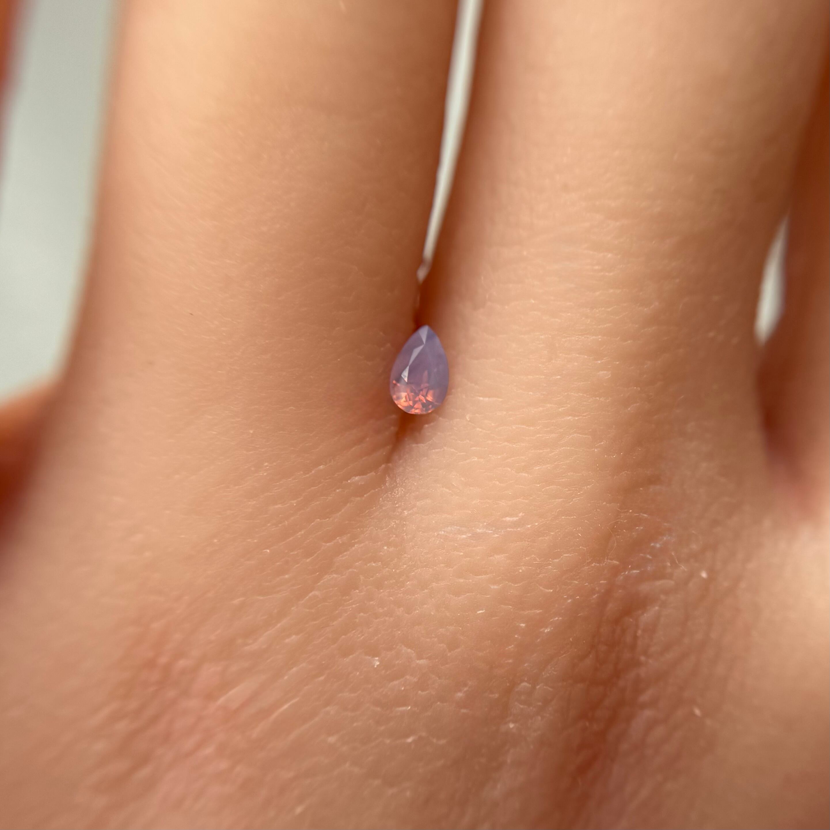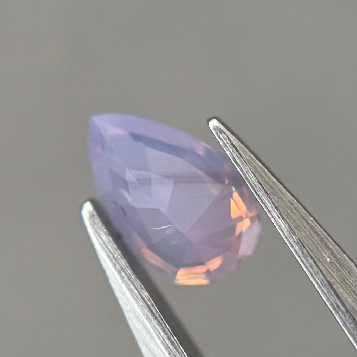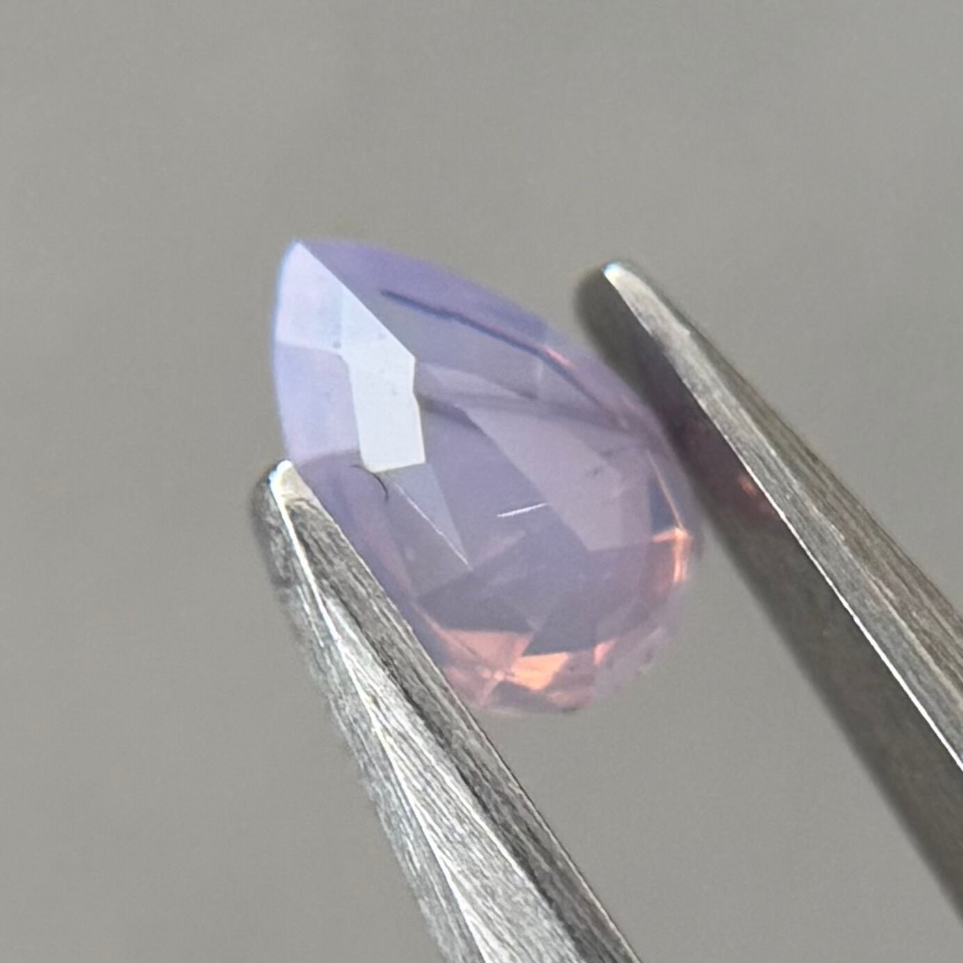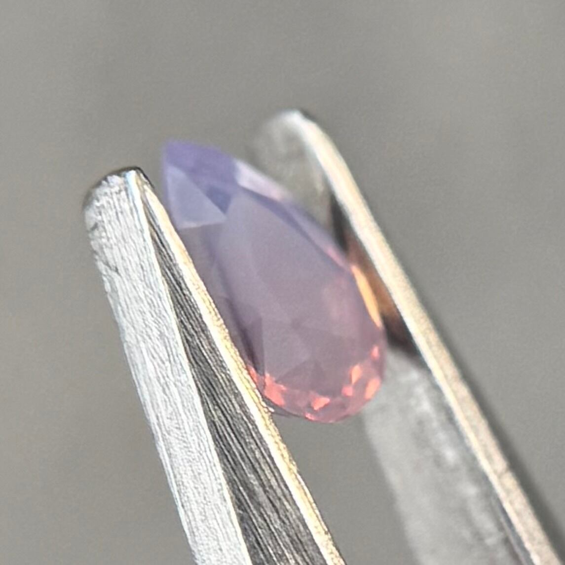 暖色系のテリがまるでマジックアワーのように煌めくシルキーサファイアです。紫とも青とも取れる不思議な色合いで、インクルージョンが縞模様のようで可愛らしいです