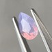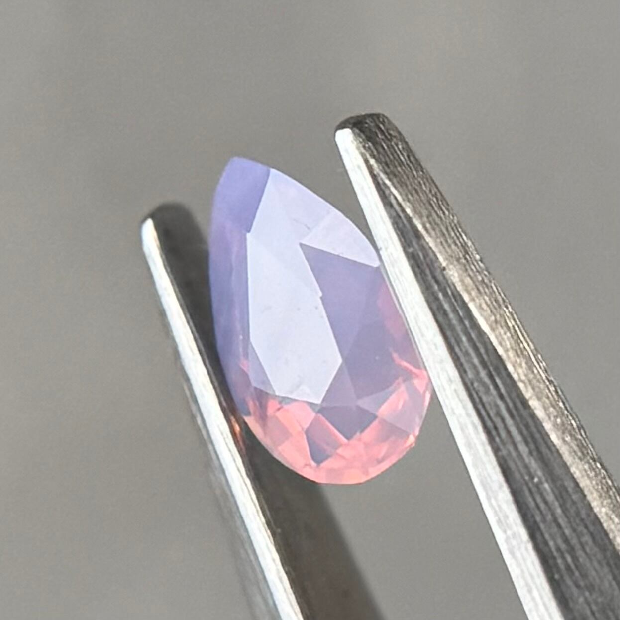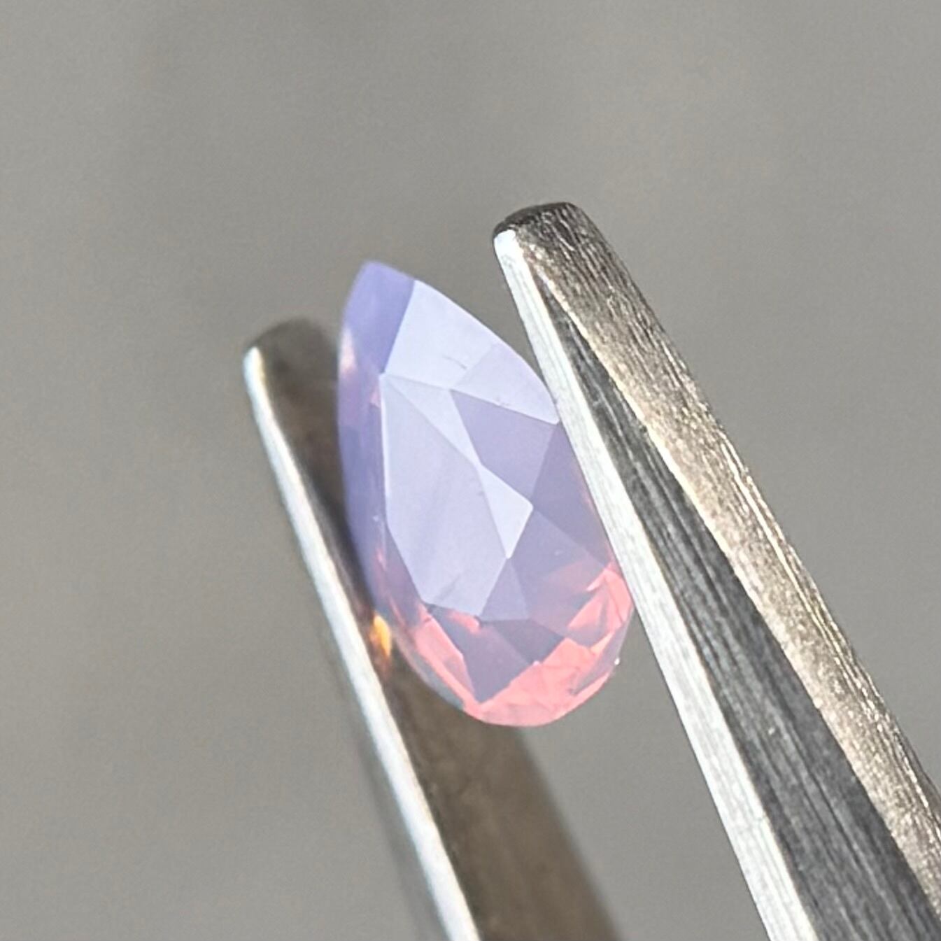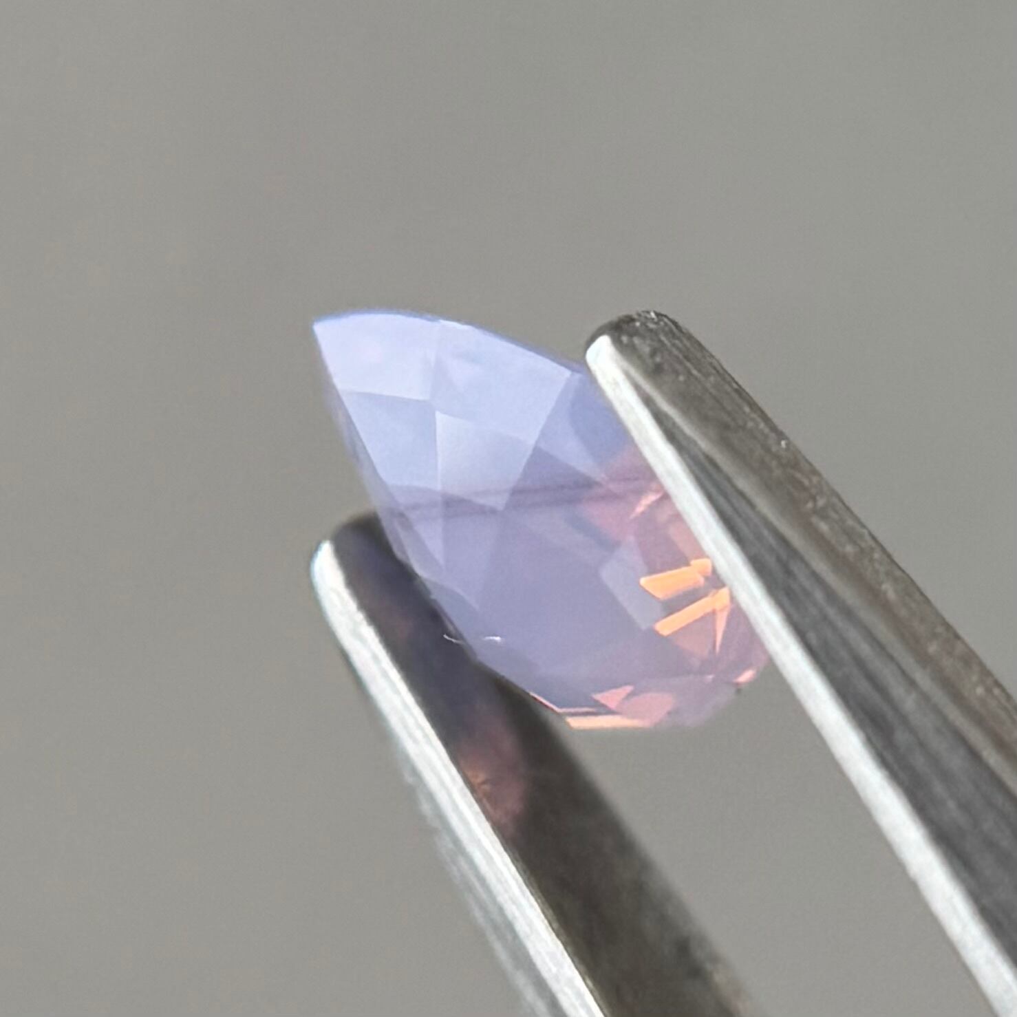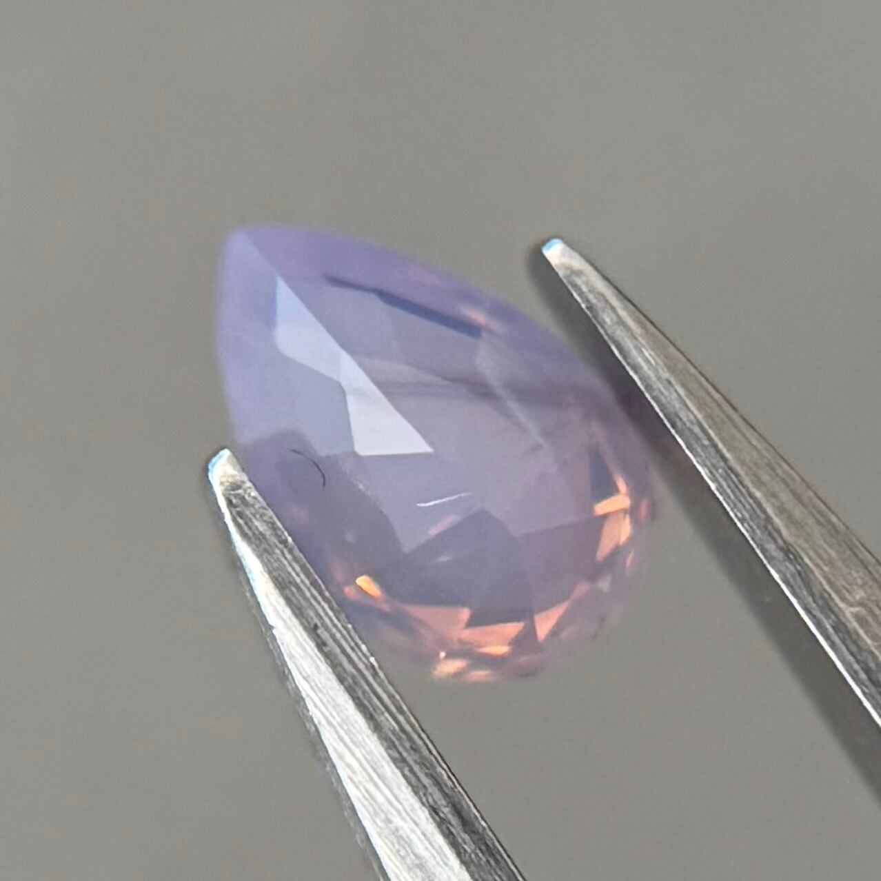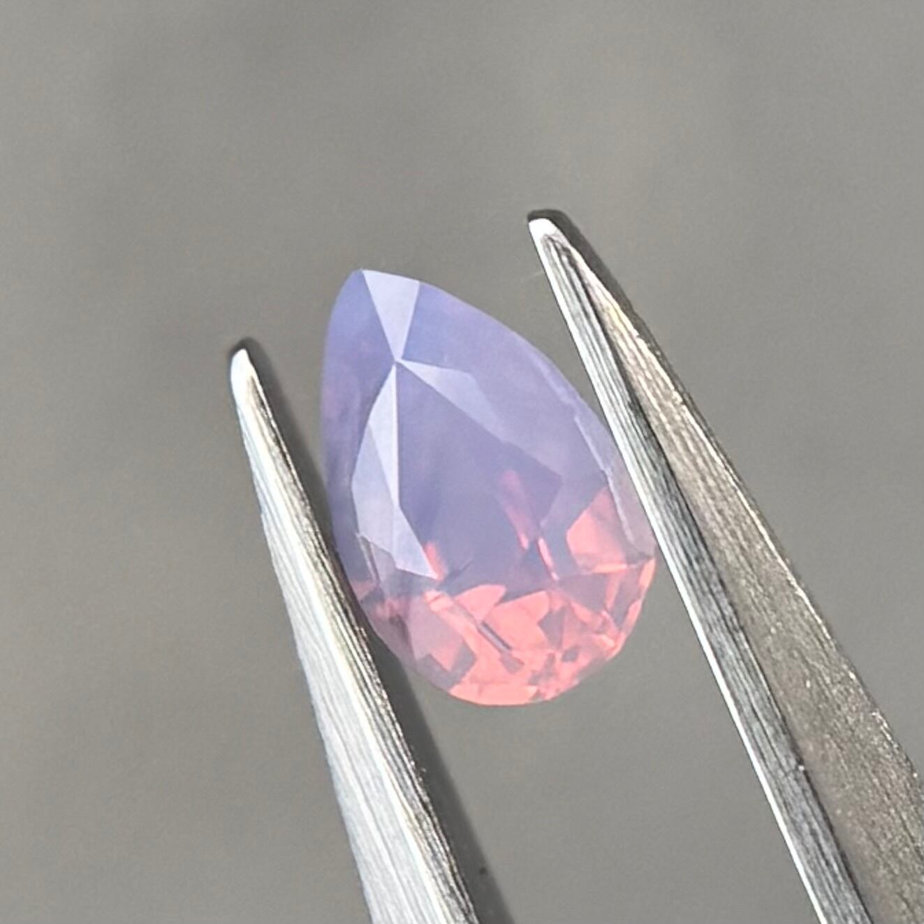 暖色系のテリがまるでマジックアワーのように煌めくシルキーサファイアです。紫とも青とも取れる不思議な色合いで、インクルージョンが縞模様のようで可愛らしいです