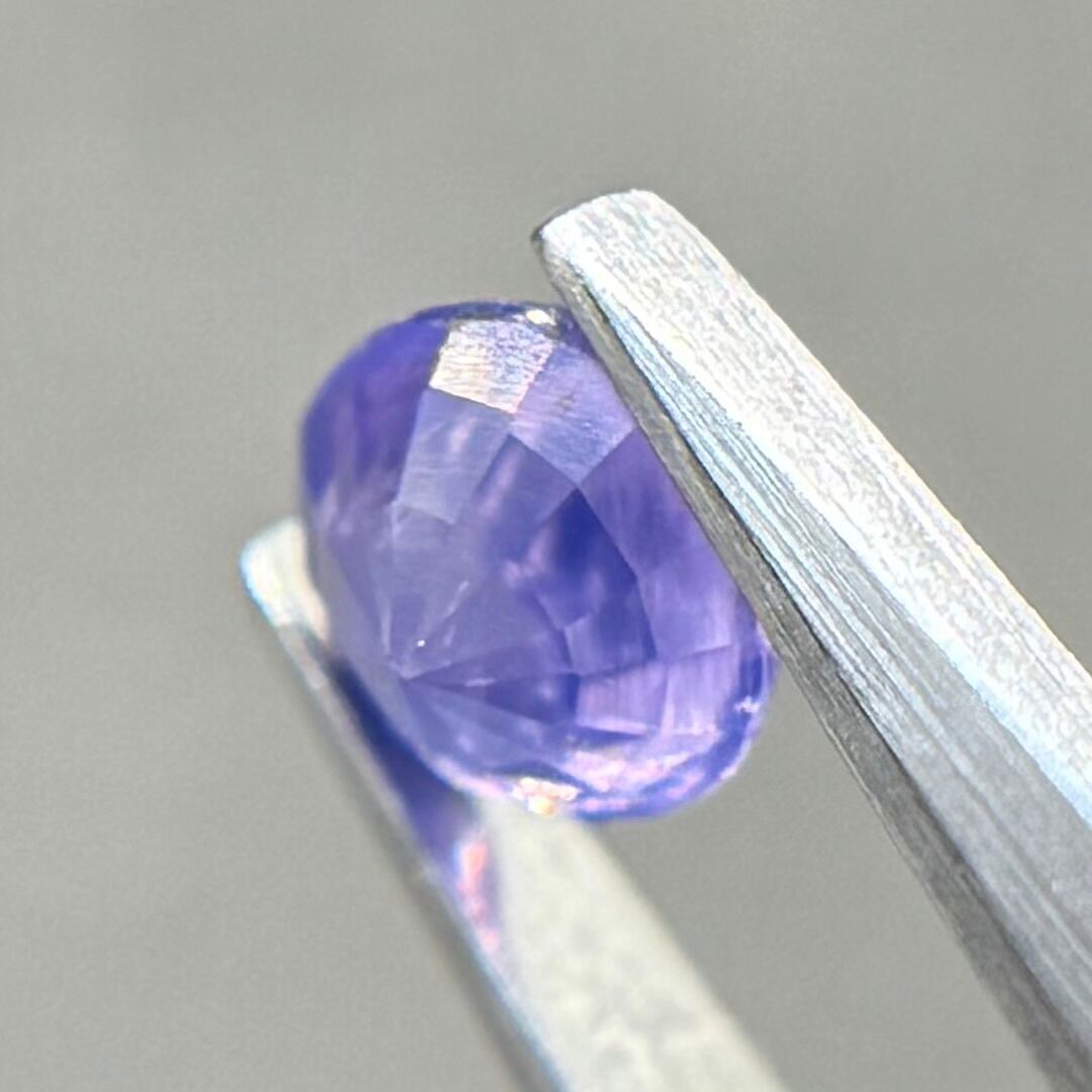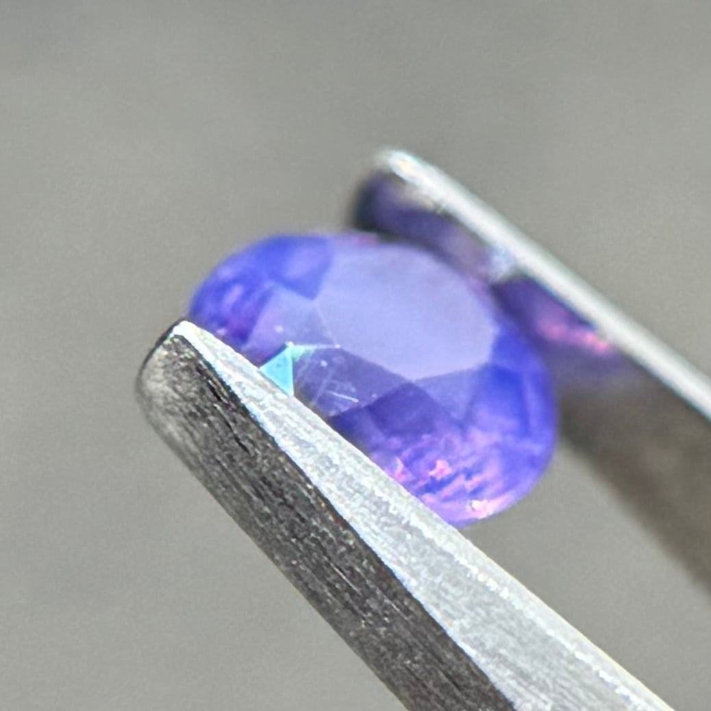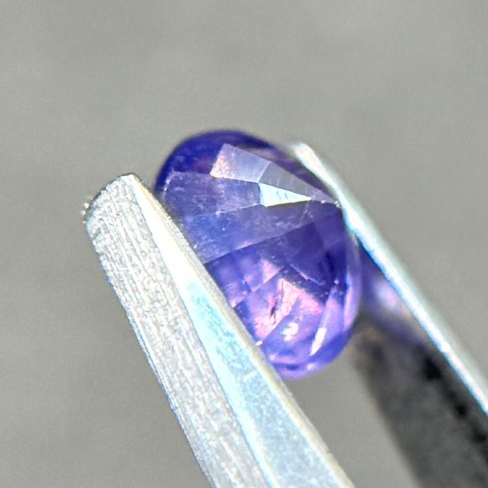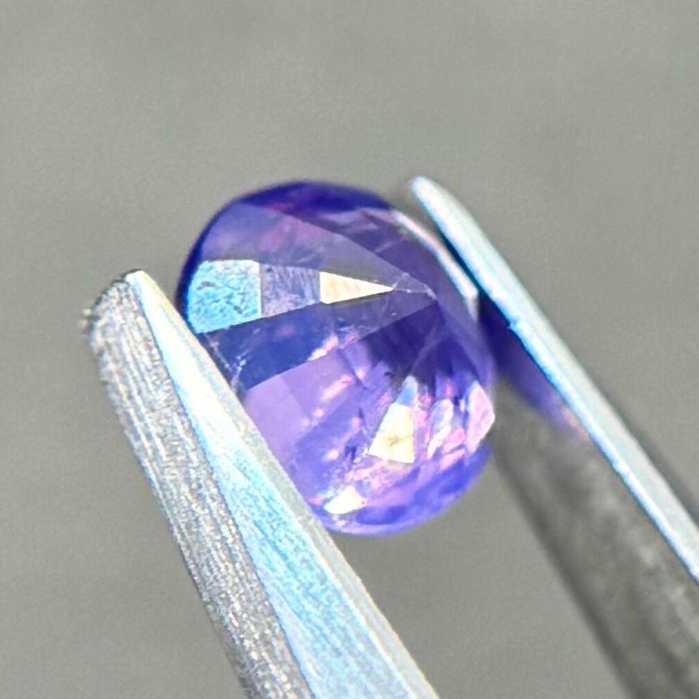 ビビッドなパープルにピンクのテリが夜桜のようで美しいシルキーサファイアです。クラッキングが多め&カットが少し甘いですが、色のノリがとても美しいです