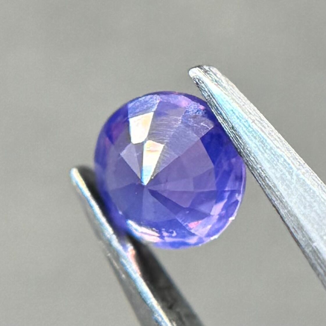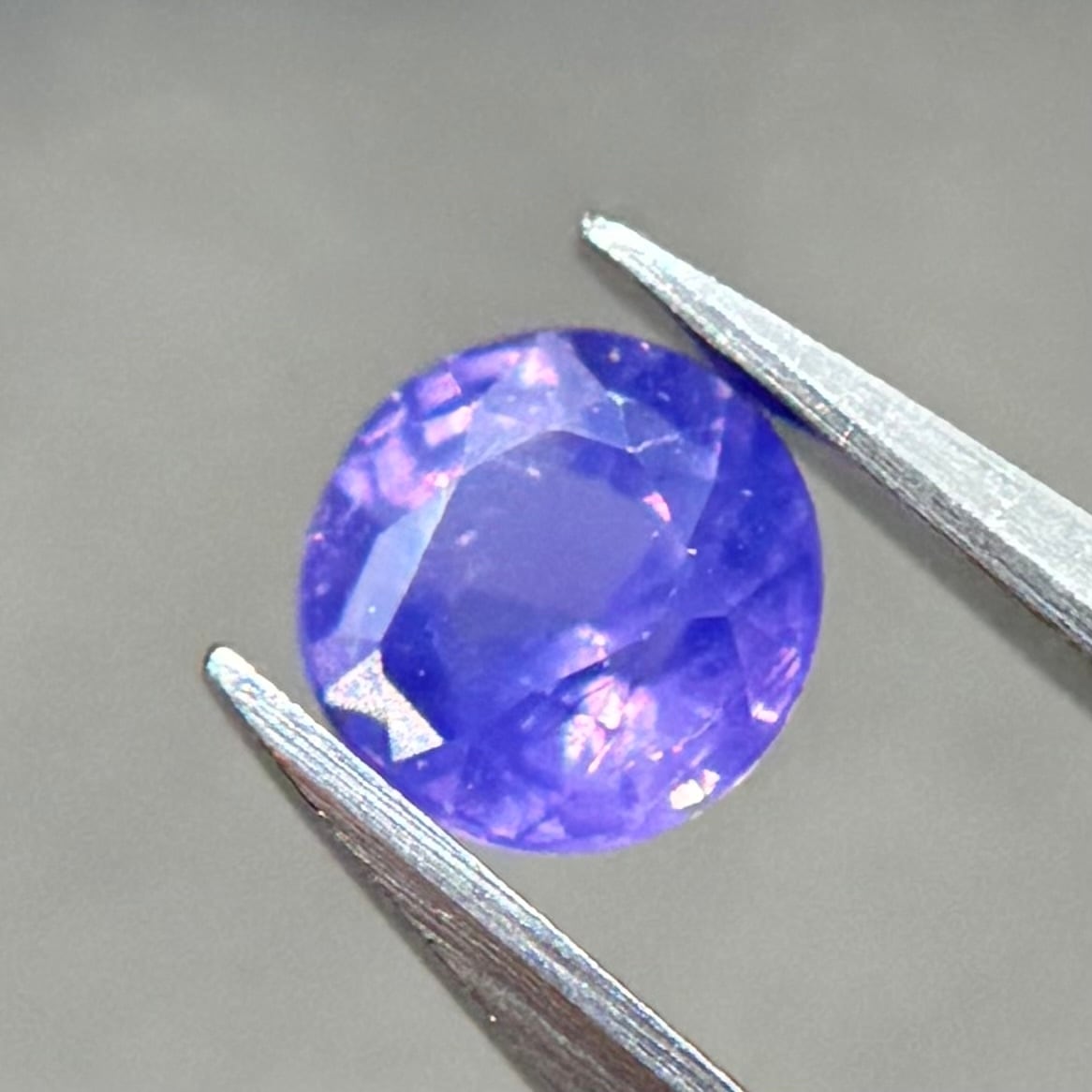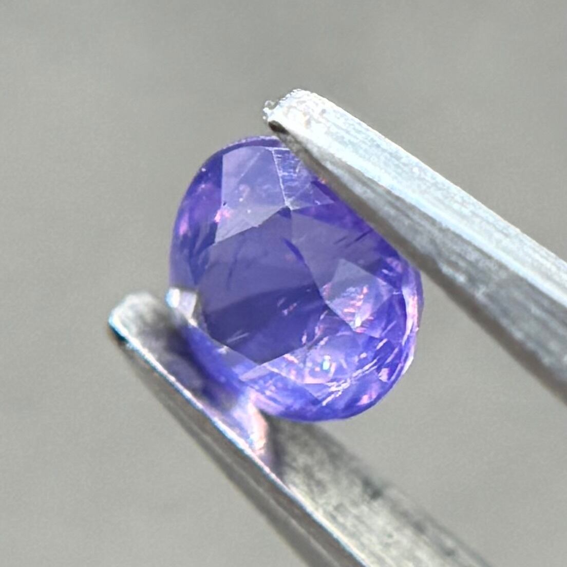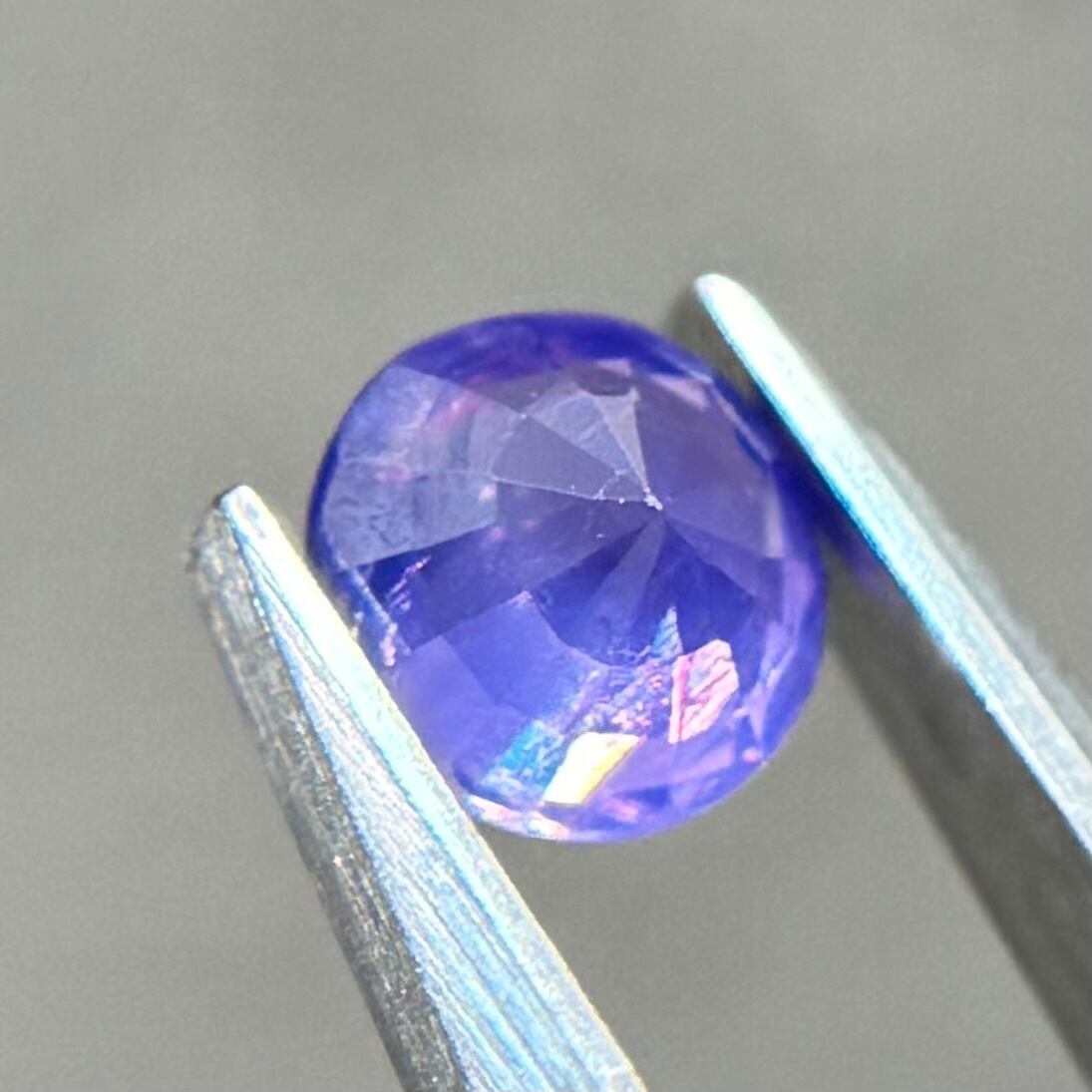 ビビッドなパープルにピンクのテリが夜桜のようで美しいシルキーサファイアです。クラッキングが多め&カットが少し甘いですが、色のノリがとても美しいです