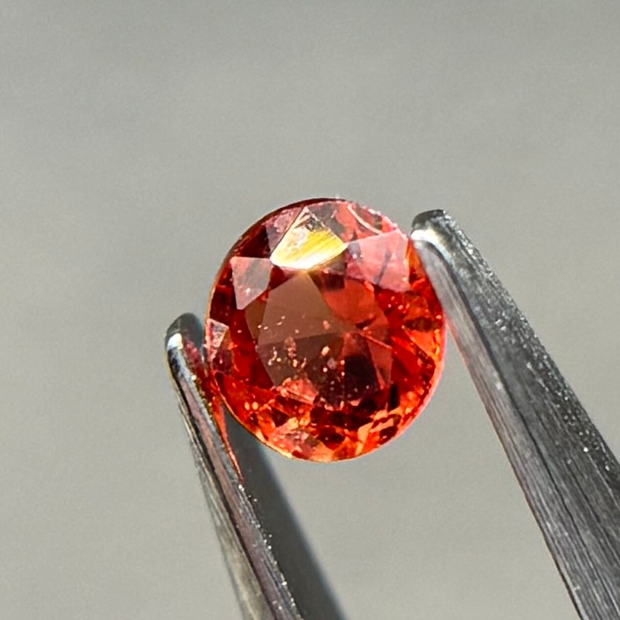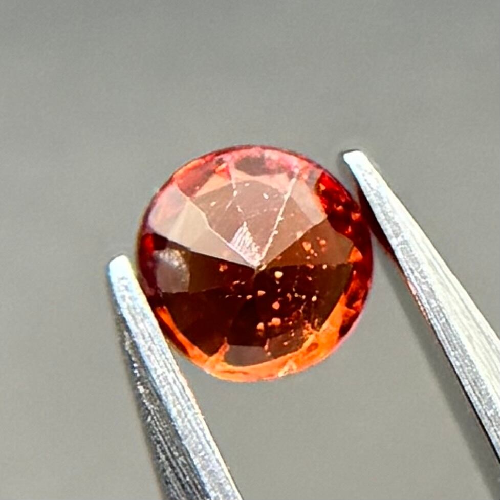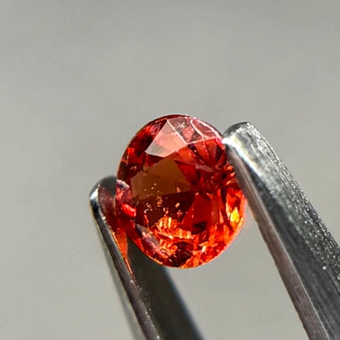 小粒ながら発色が良く、ブラッドオレンジのような色合いが美しいスピネルです。シュワシュワインクルージョンが炭酸みたいです