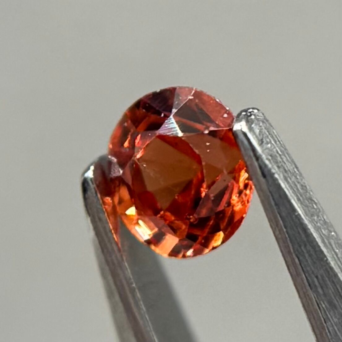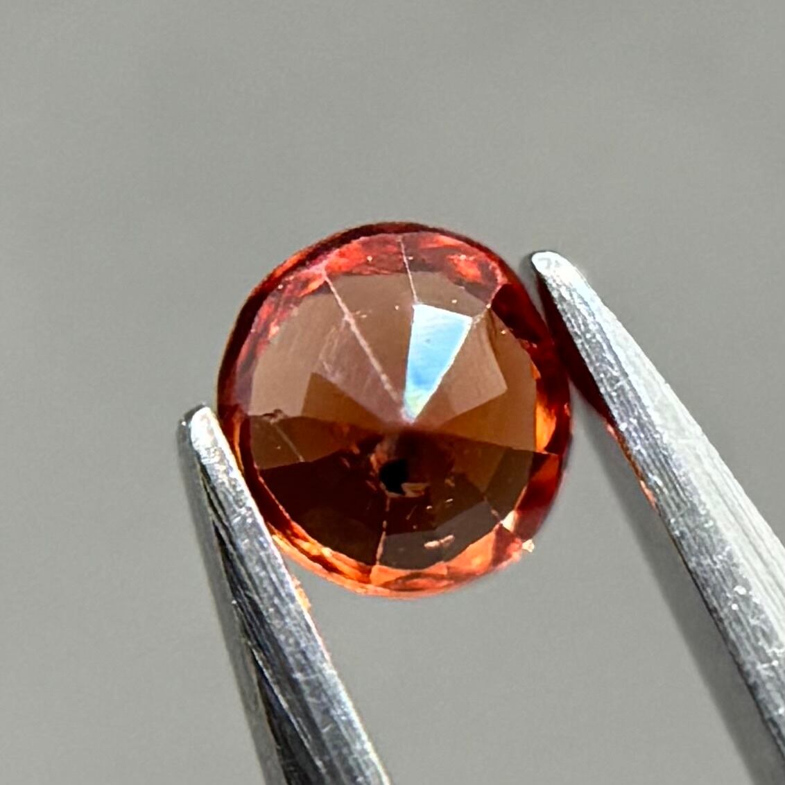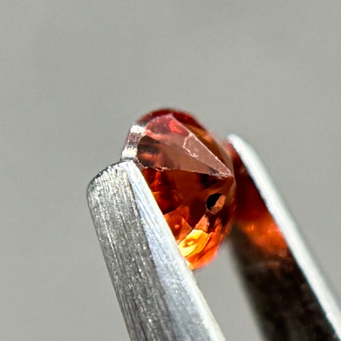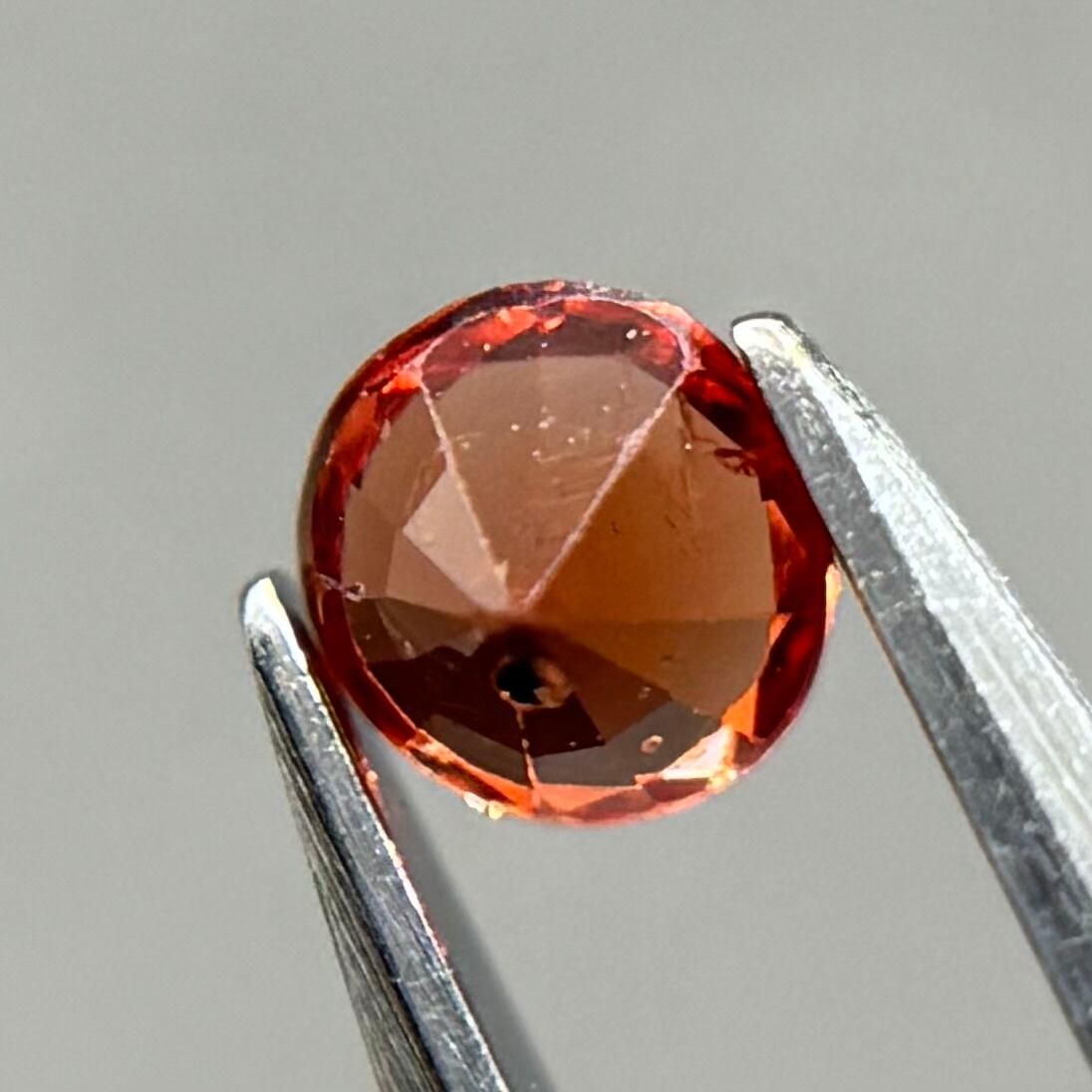 小粒ながら発色が良く、ブランデーのようなストレートティーのような色合いが美しいスピネルです。パビリオン側に結晶体インクルージョンと黒色インクルージョンがありますがテーブル側からは肉眼では気にならない程度です