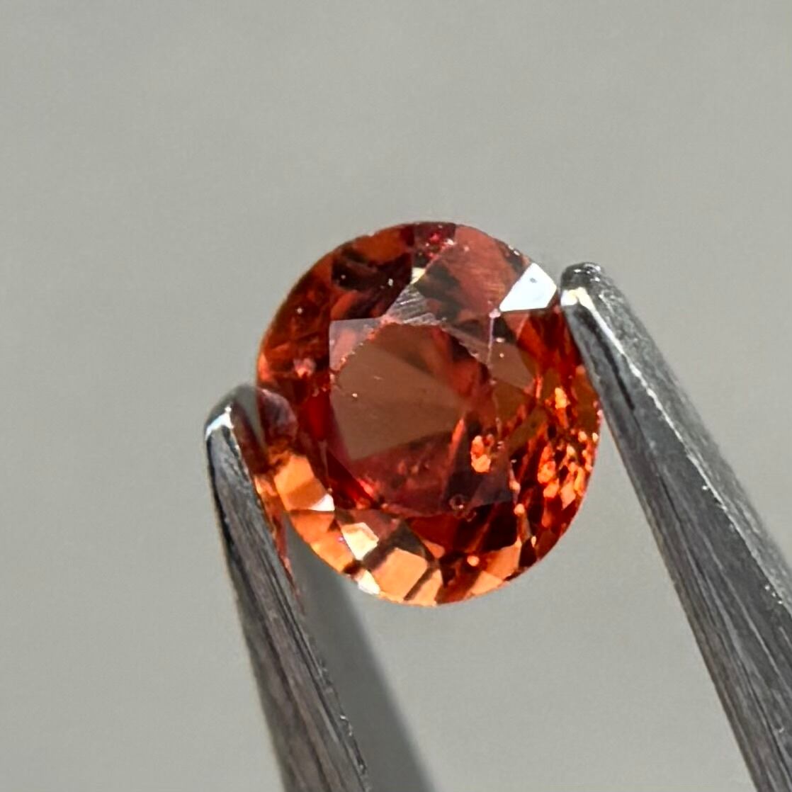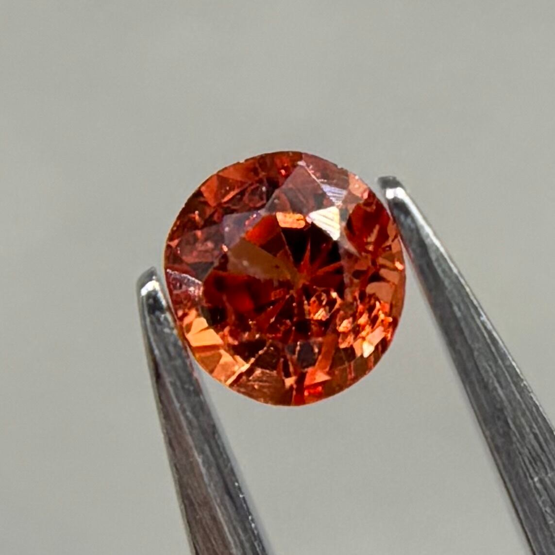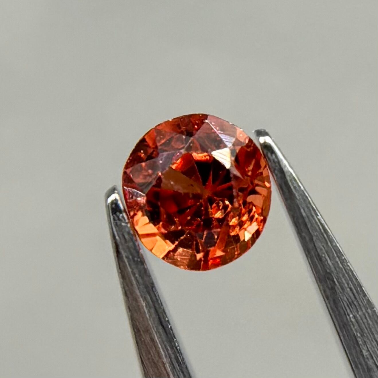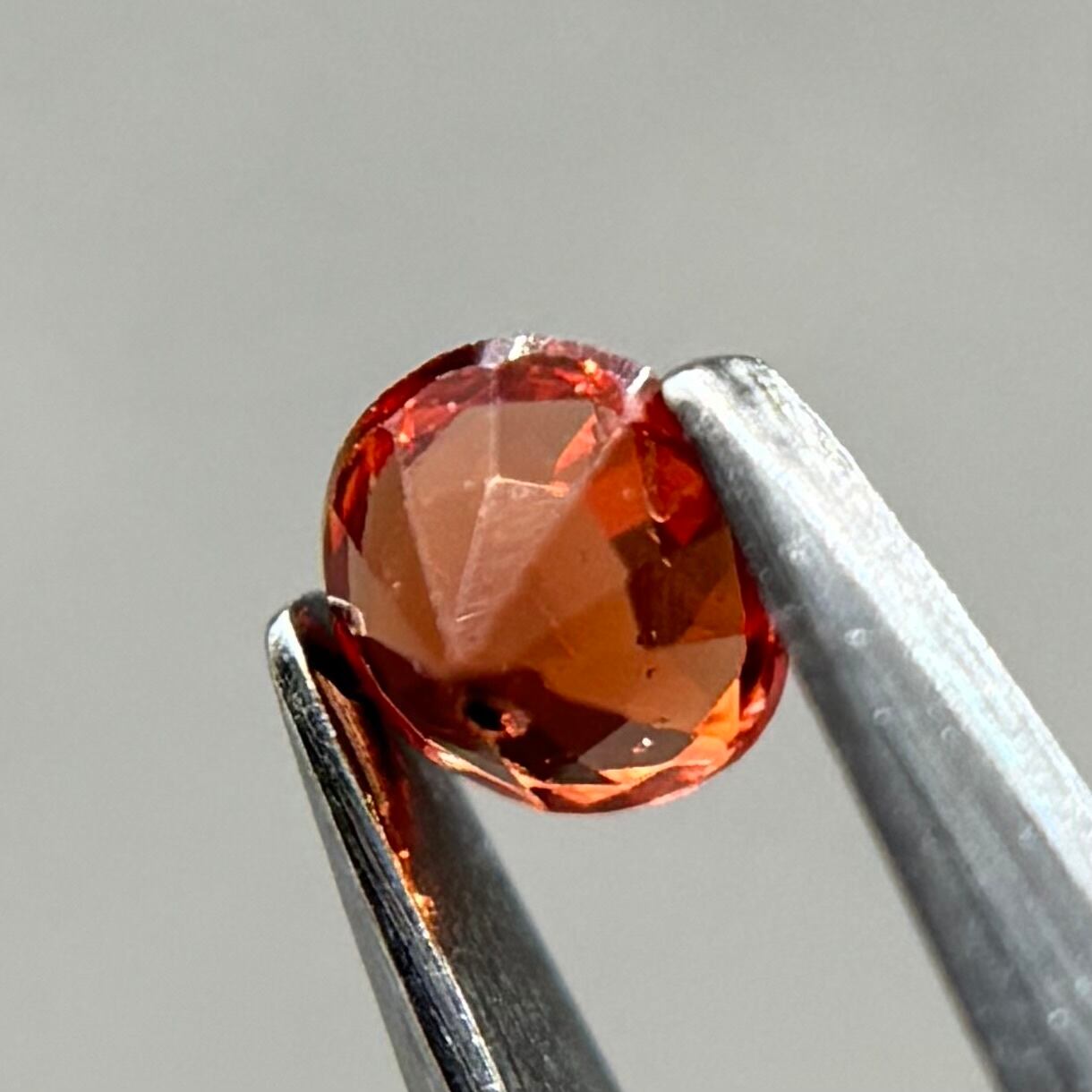 小粒ながら発色が良く、ブランデーのようなストレートティーのような色合いが美しいスピネルです。パビリオン側に結晶体インクルージョンと黒色インクルージョンがありますがテーブル側からは肉眼では気にならない程度です