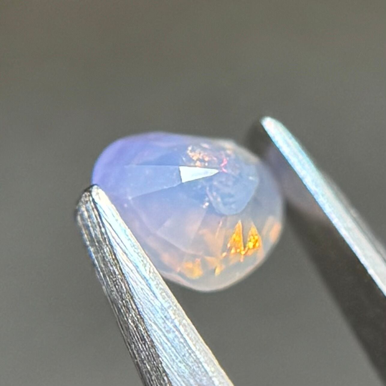 ・パビリオン側に虹を伴う結晶体インクルージョン