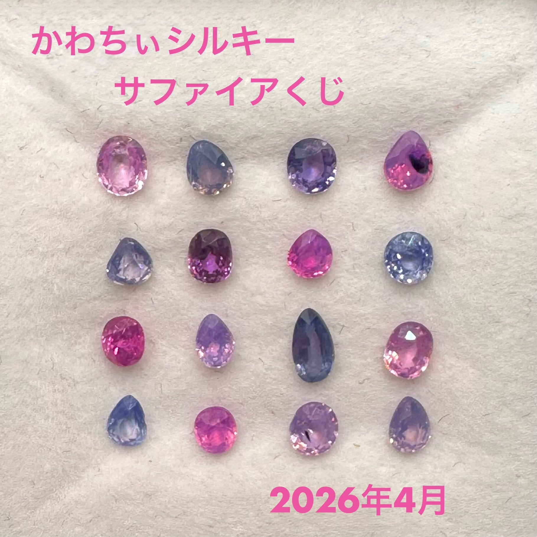 シルキーサファイアが気になる…という方も、シルキーサファイア大好き!という方も楽しんでいただけるように、そして月一のちょっとした楽しみとなるように、かわちぃサイズのシルキーサファイアを集めました。久々の4月はこっくり、てりてり、キラキラ、シルキーの魅力がギュッと詰まった16石です。何が届くかは完全ランダムです。シルキー沼へぜひ…