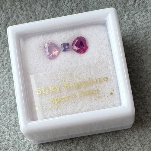 天使ちゃんと小悪魔ちゃんのような色のシルキーサファイアを合わせたセットです。ハートはサイズだけではなく深さも合わせてますので、そのままお仕立てにお使いいただきやすいかと思います