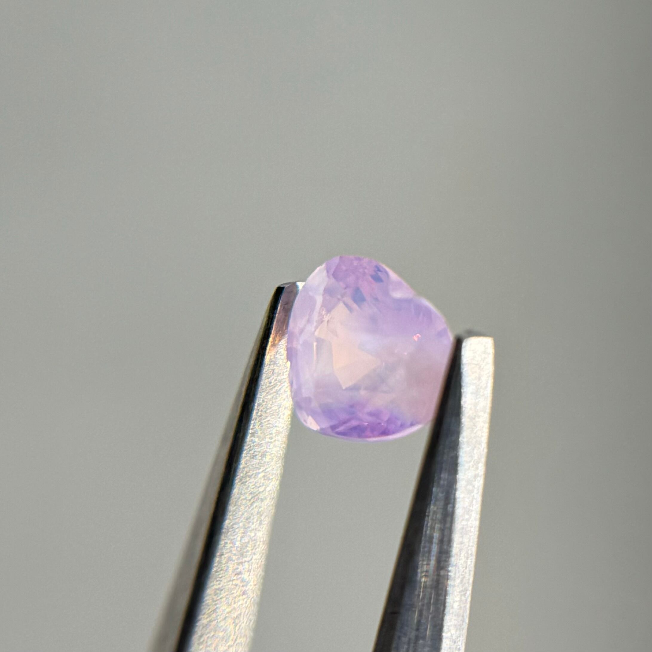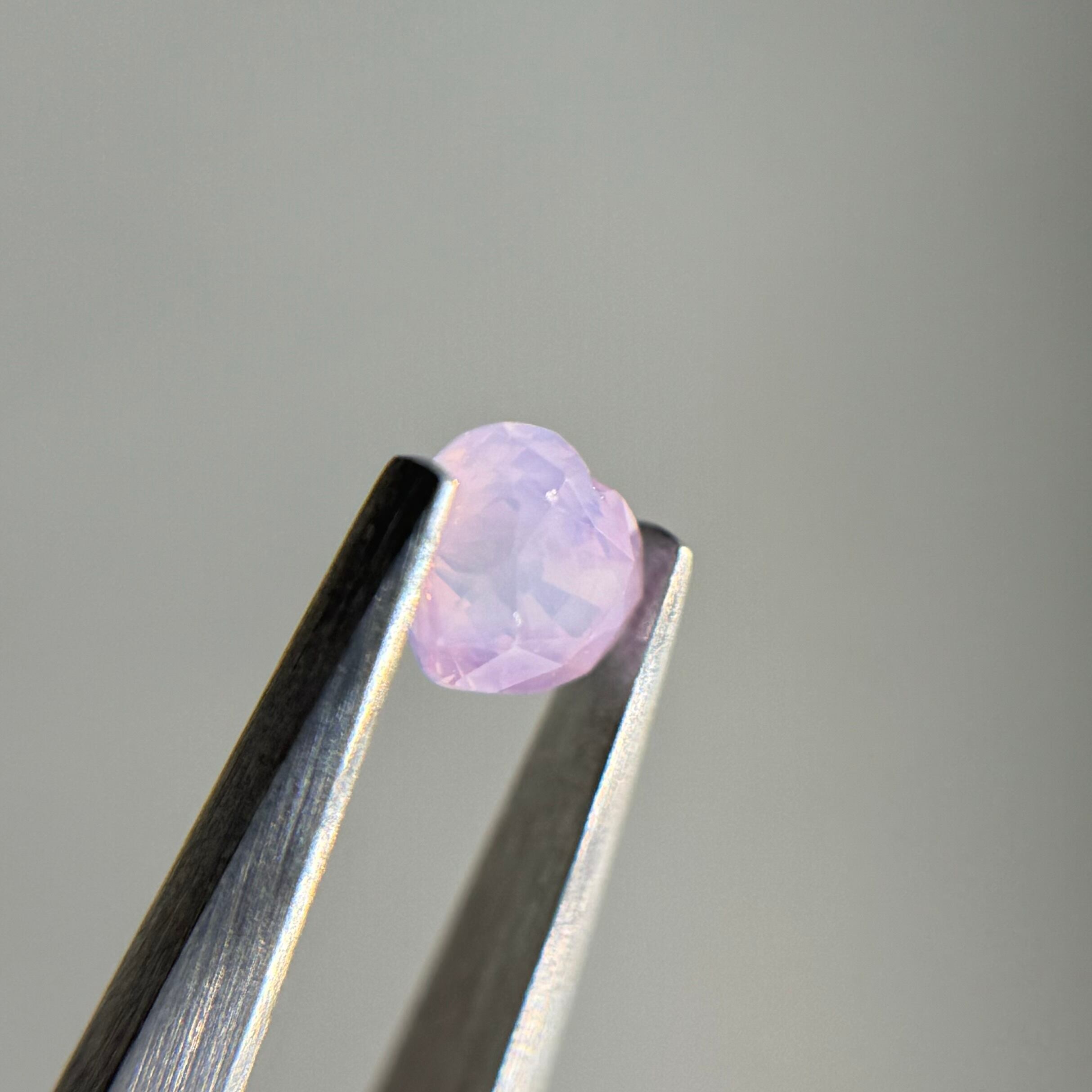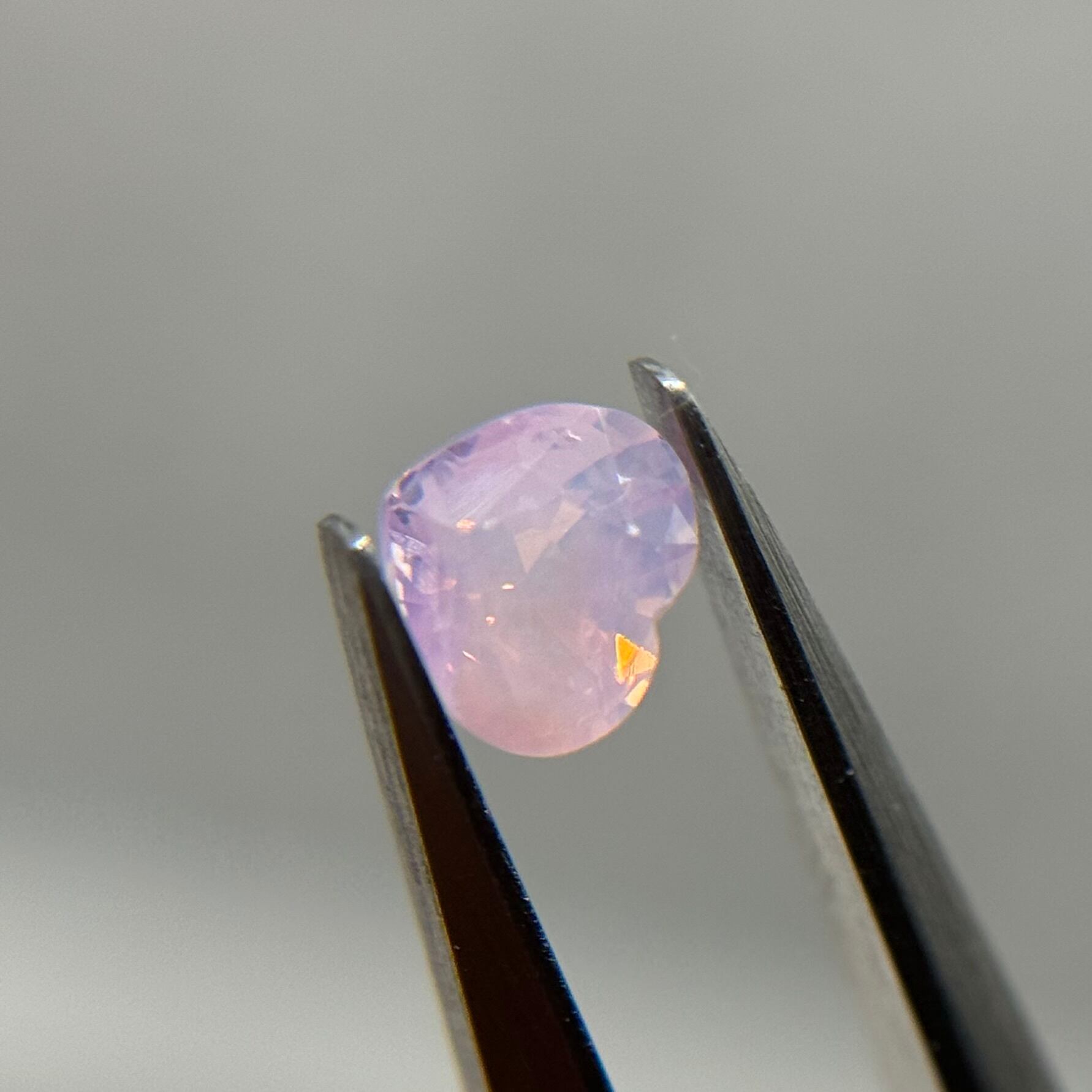 一見天使なカラーに見えますが、ポイントに入った色だまりのおかげで色もテリも角度や照明によってどんどん変わっていく小悪魔なシルキーサファイアです。目立つクラックなどもなく綺麗な子で、テリは大粒ラメタイプなのでバッチバチです(但し、カメラに中々写させてくれない