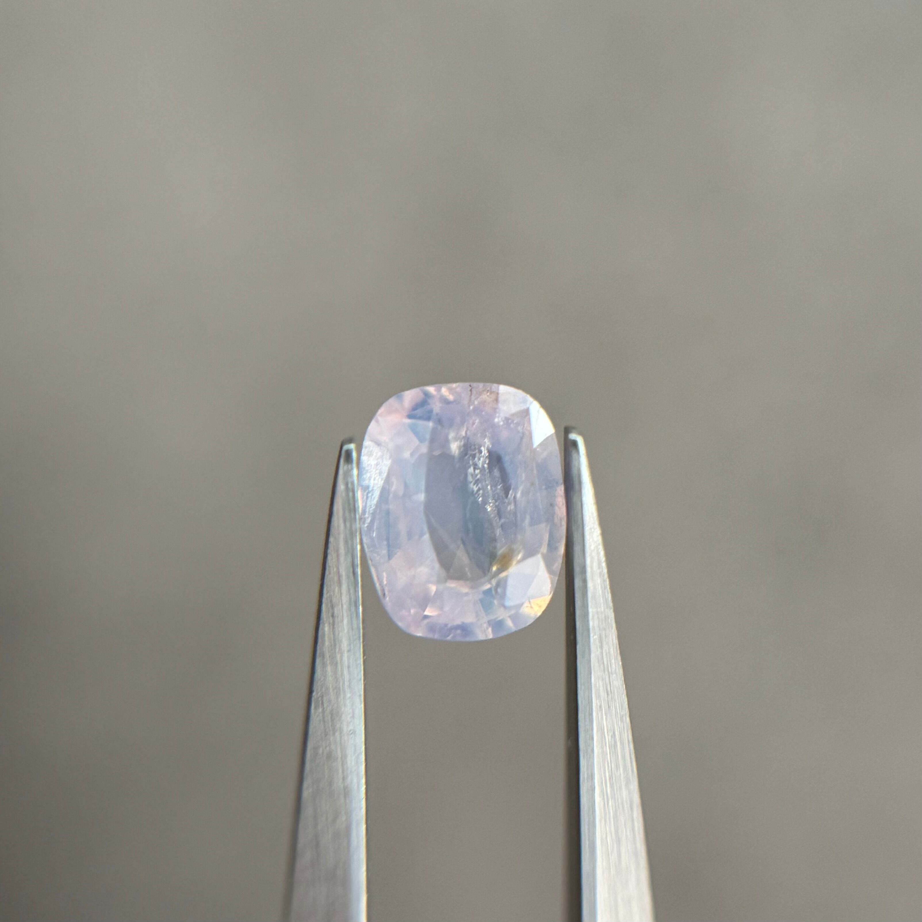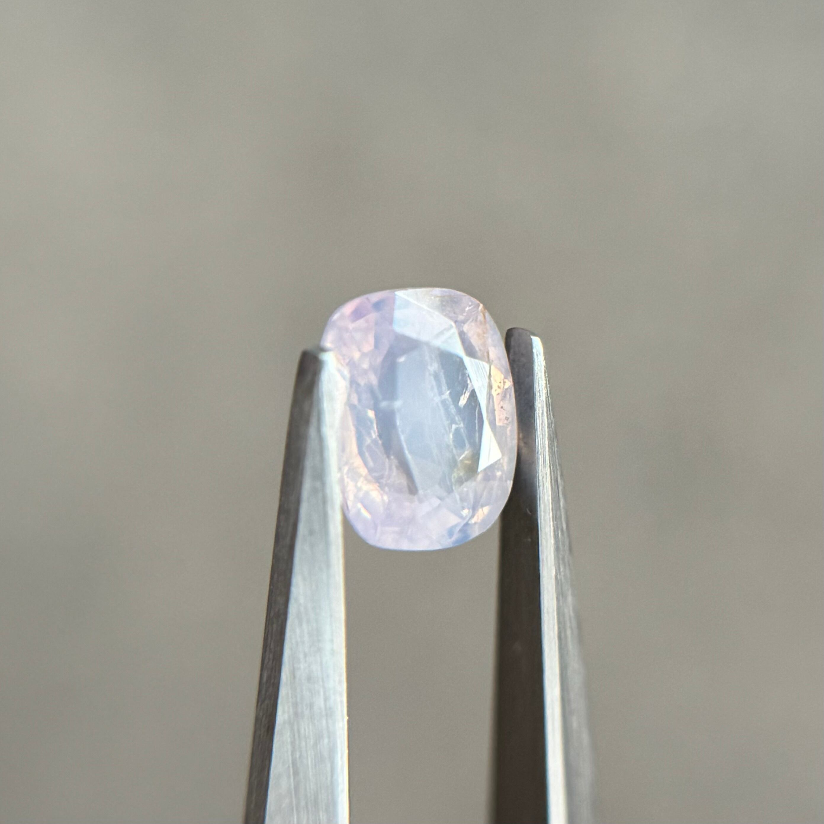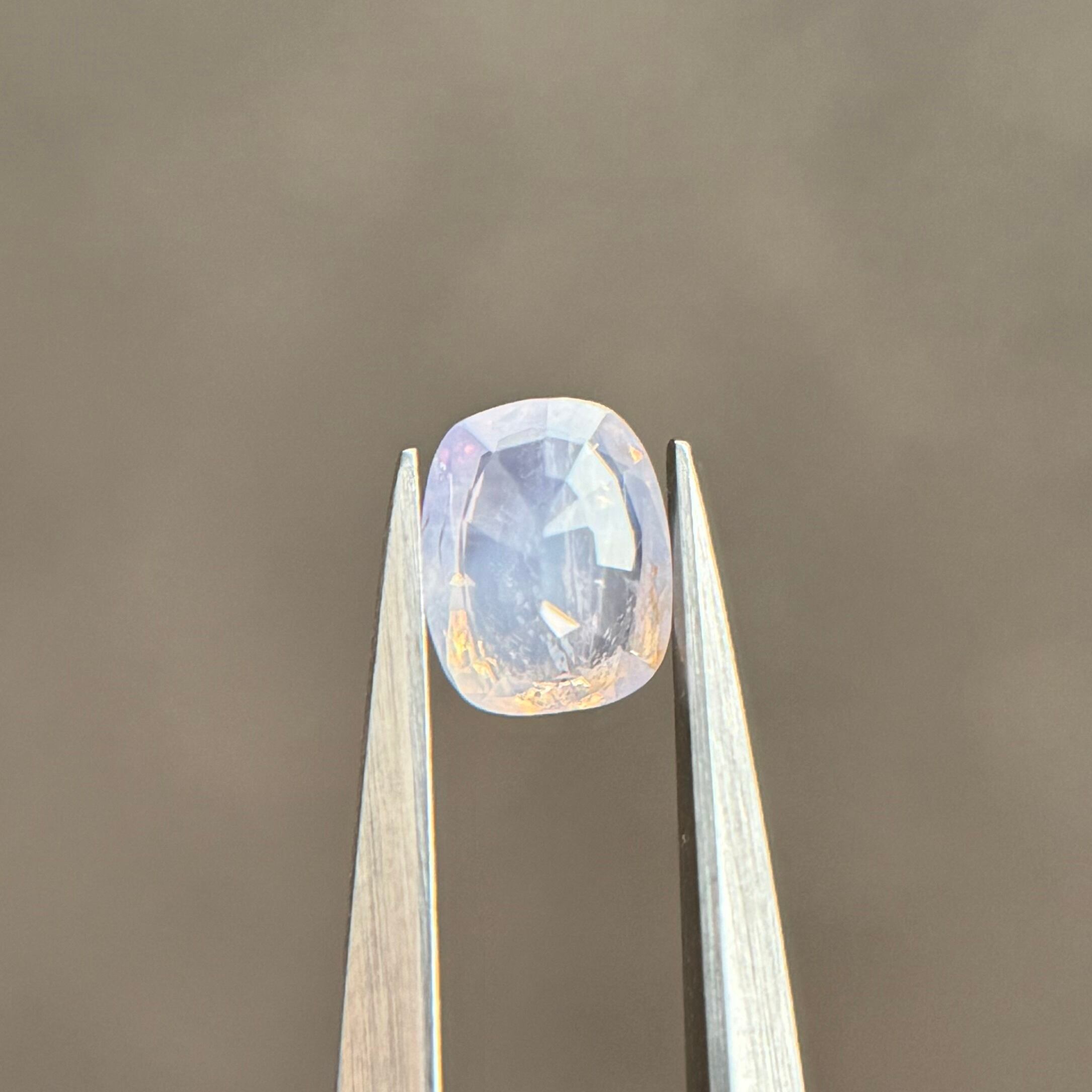 淡い青色が可愛らしいシルキーサファイアです。クラックは多めですがバチバチの黄色テリに加えてたまにピンクのテリが顔を出します