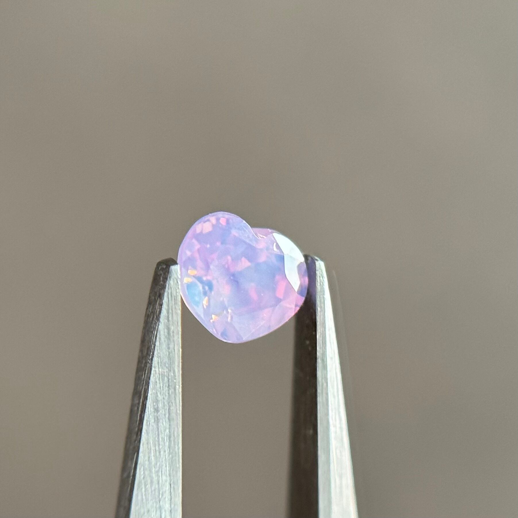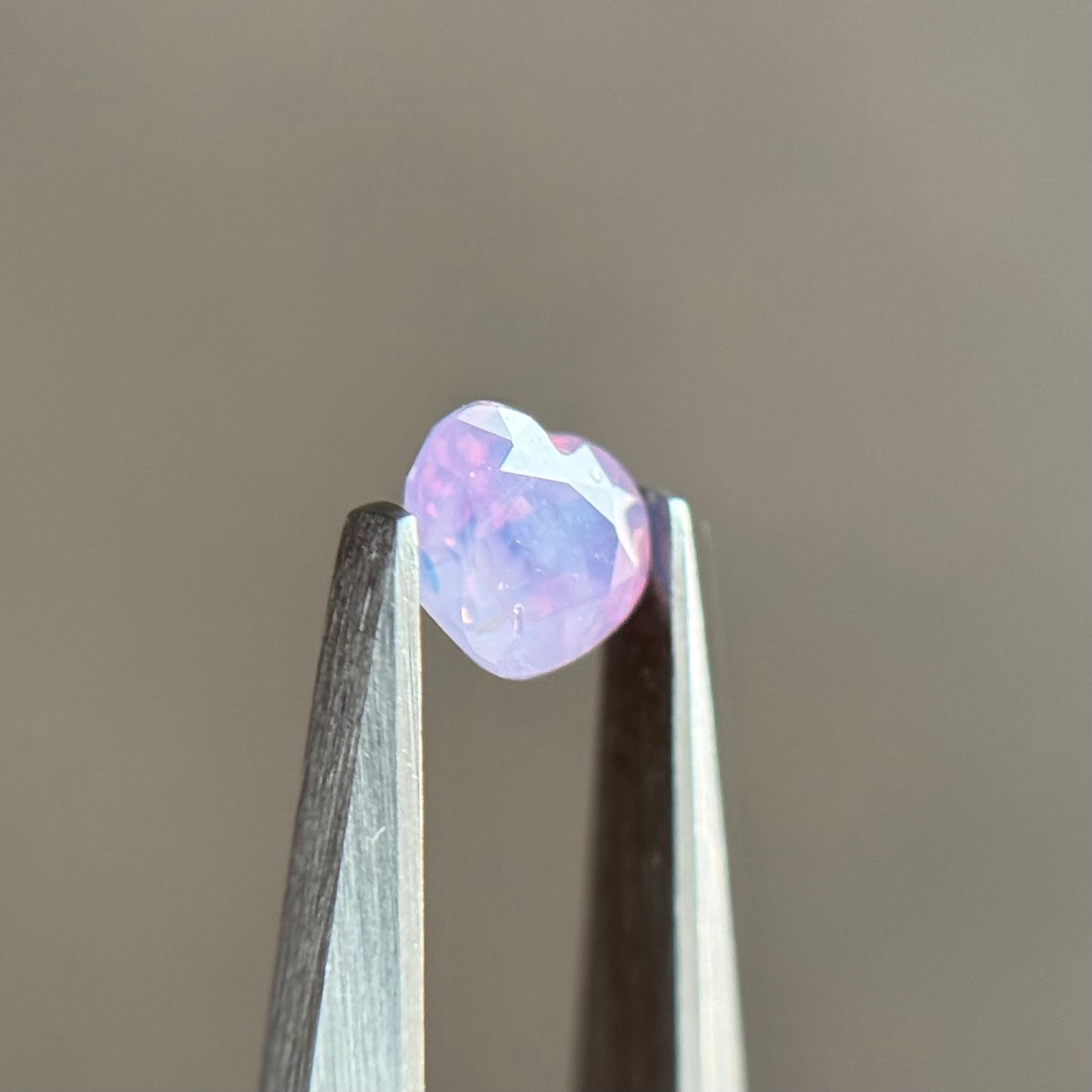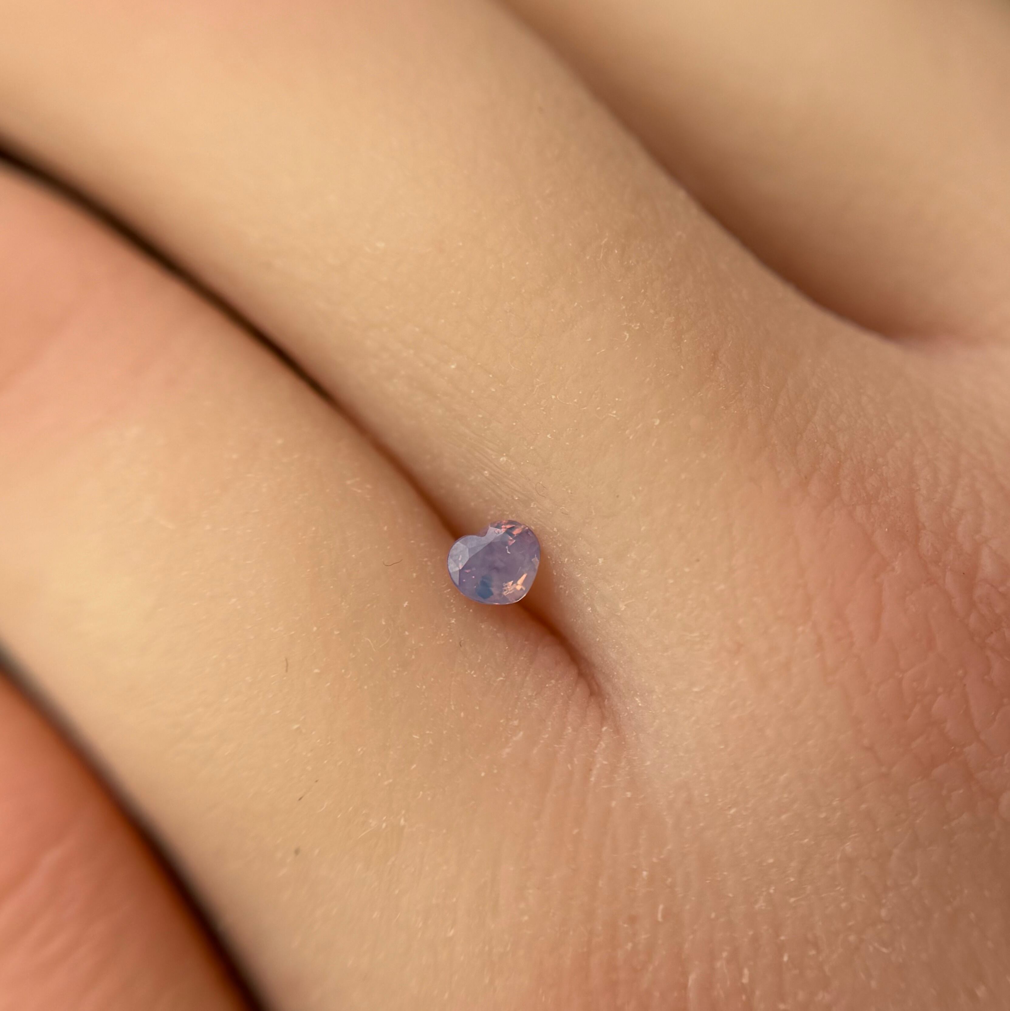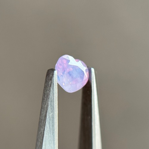 複数の色が混ざりあって不思議な色合いになったシルキーサファイアです。テーブルはブルー、パビリオンはピンク、キューレットはパープル、と表情がコロコロ変わります。あとはもう何と言ってもテリがすごい!