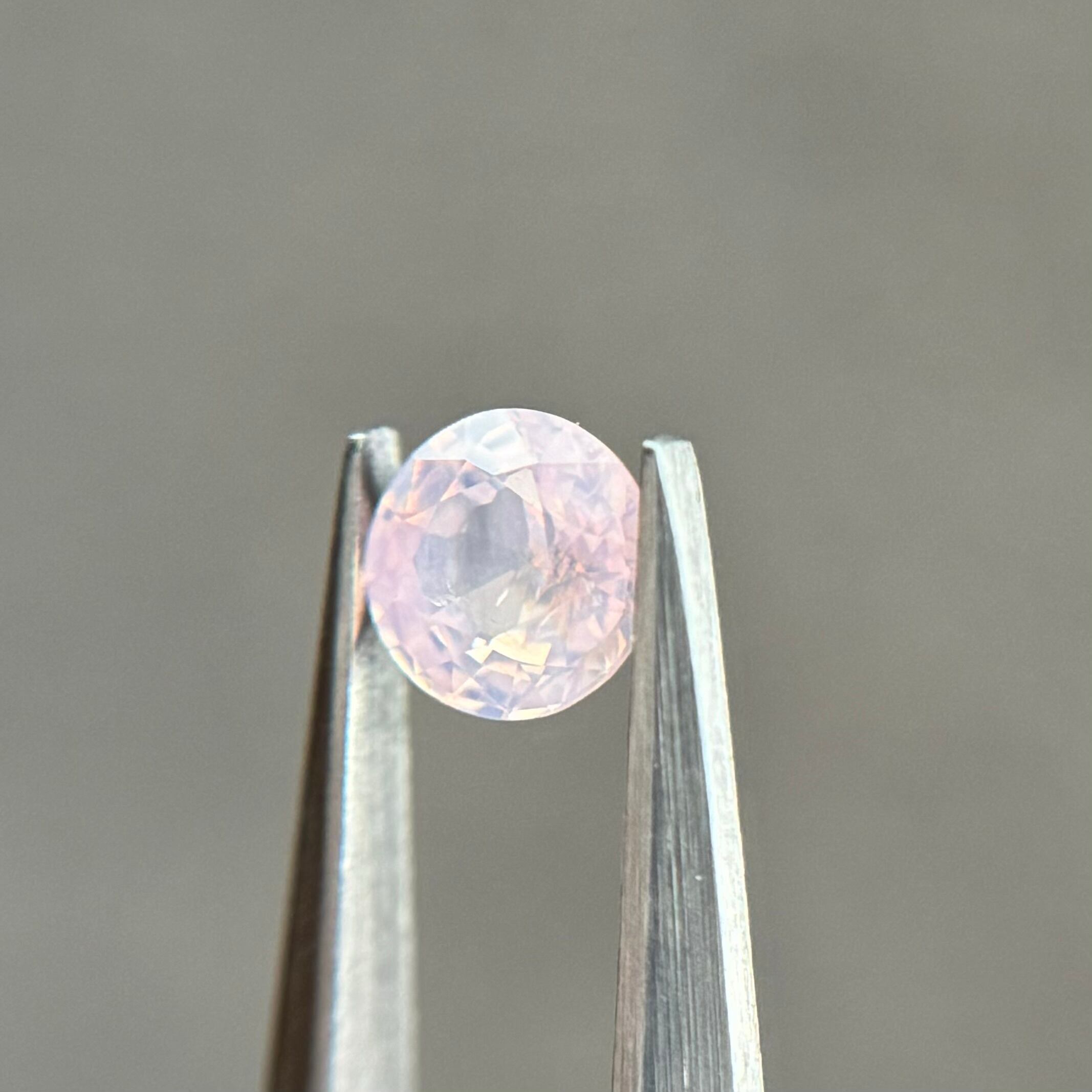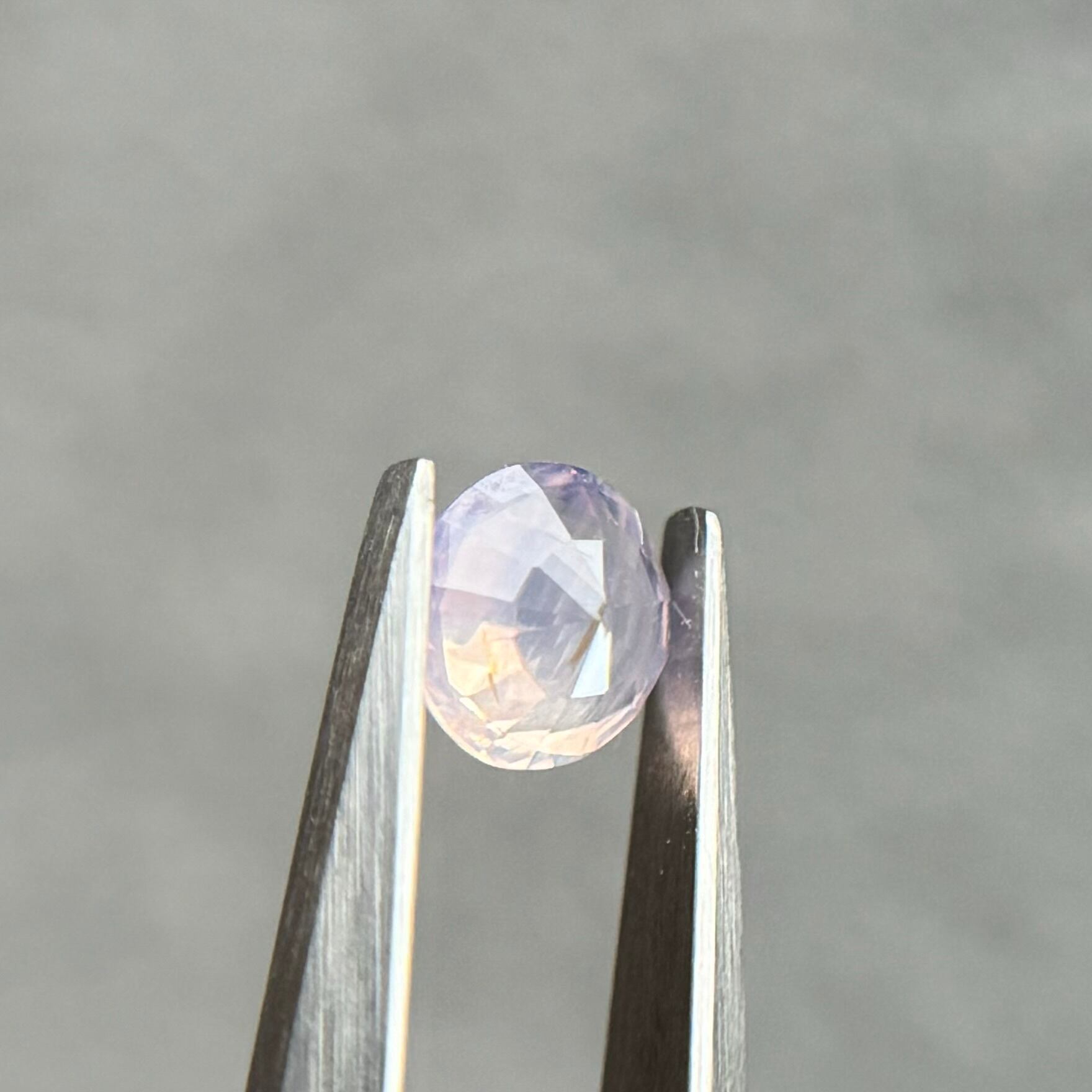 淡い紫に黄色のテリが可憐なシルキーサファイアです。写真でも色が迷子になっているように、光の加減によってピンクが強くなったり青が強くなったりと、いろんな表情が楽しめます