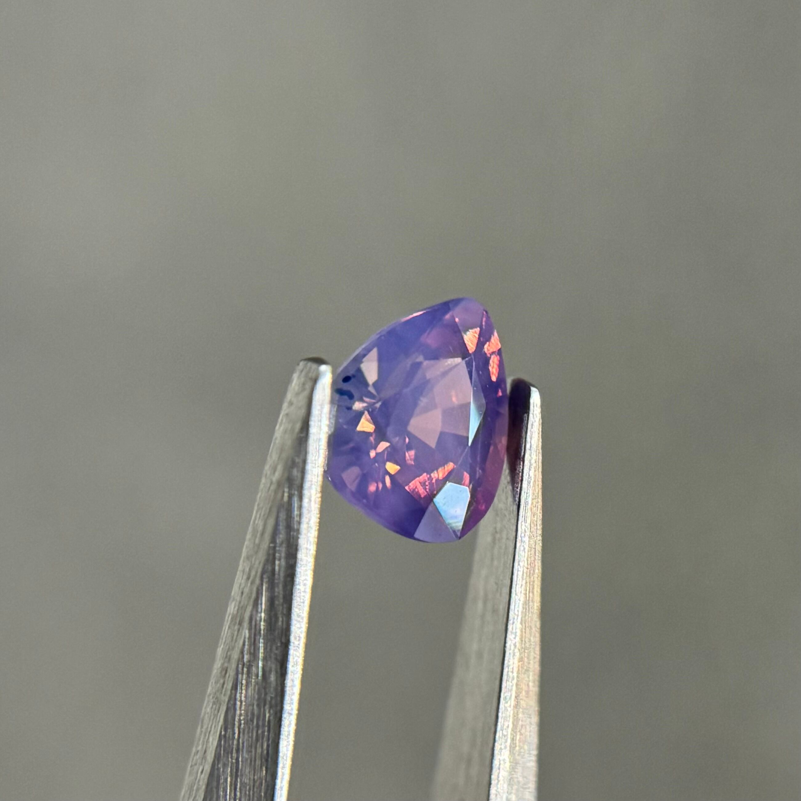 複数の色のテリによってまるでランタンを夜空に浮かべたような色合いが楽しめるシルキーサファイアです。目立ったキズがなく、ほぼルーペクリーンです