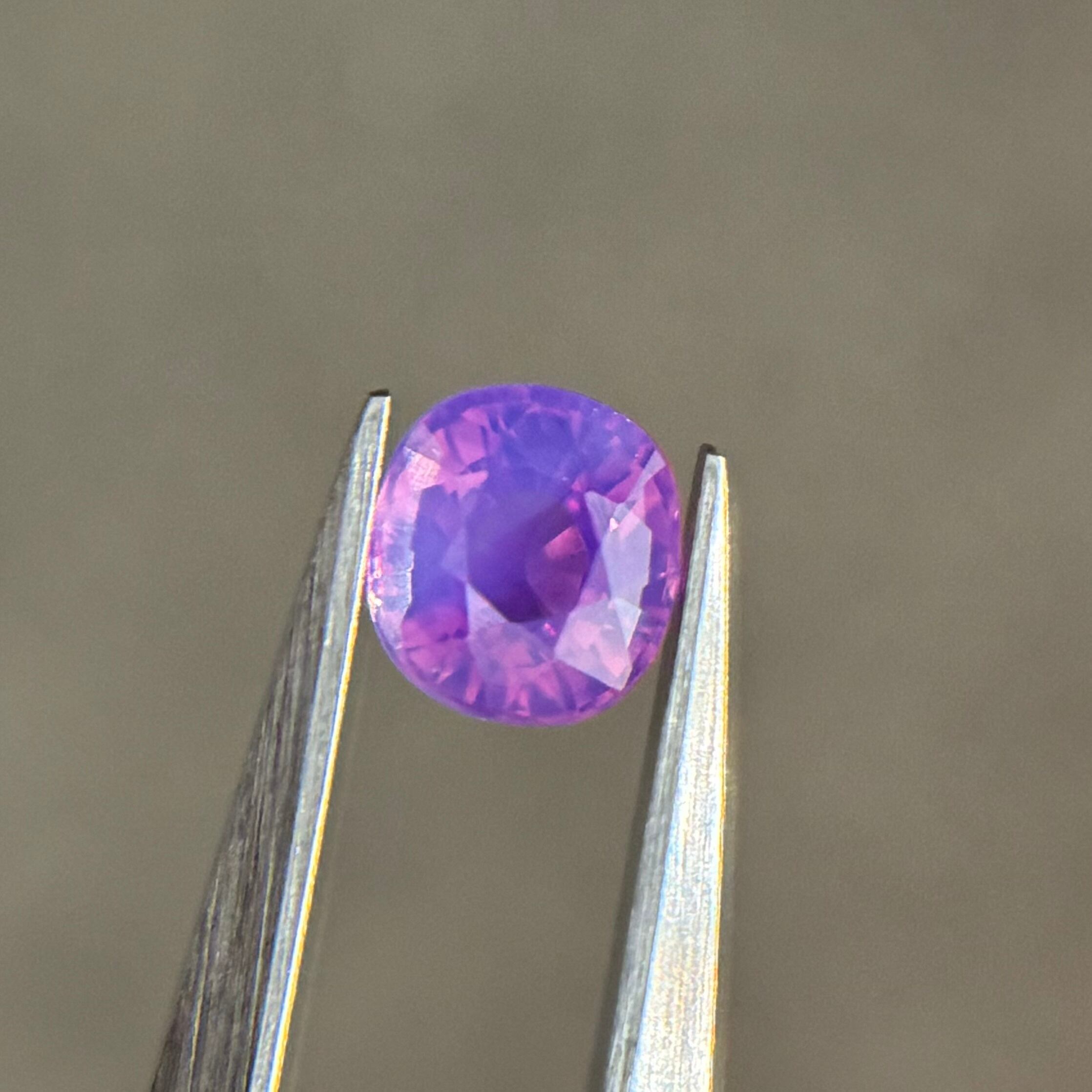 ピンクが強みの紫にテリがバチバチなシルキーサファイアです。とにかく輝きがすごい!!!そしてよく見るとテリがオレンジとピンクの2色なのがまた良いです