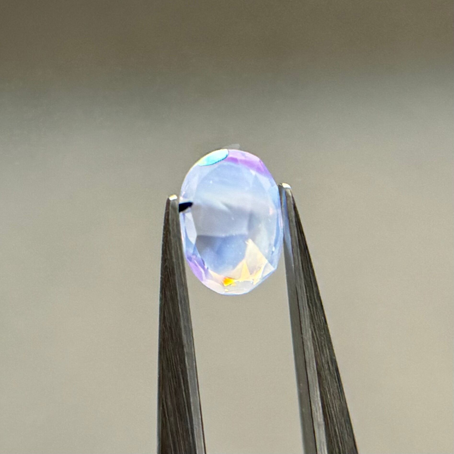 3色の特徴的な色だまりがチャームポイントのシルキーサファイアです。向きによってはまるでサンタの帽子を被っているように見えます。ほぼルーペクリーンのきれいな子です
