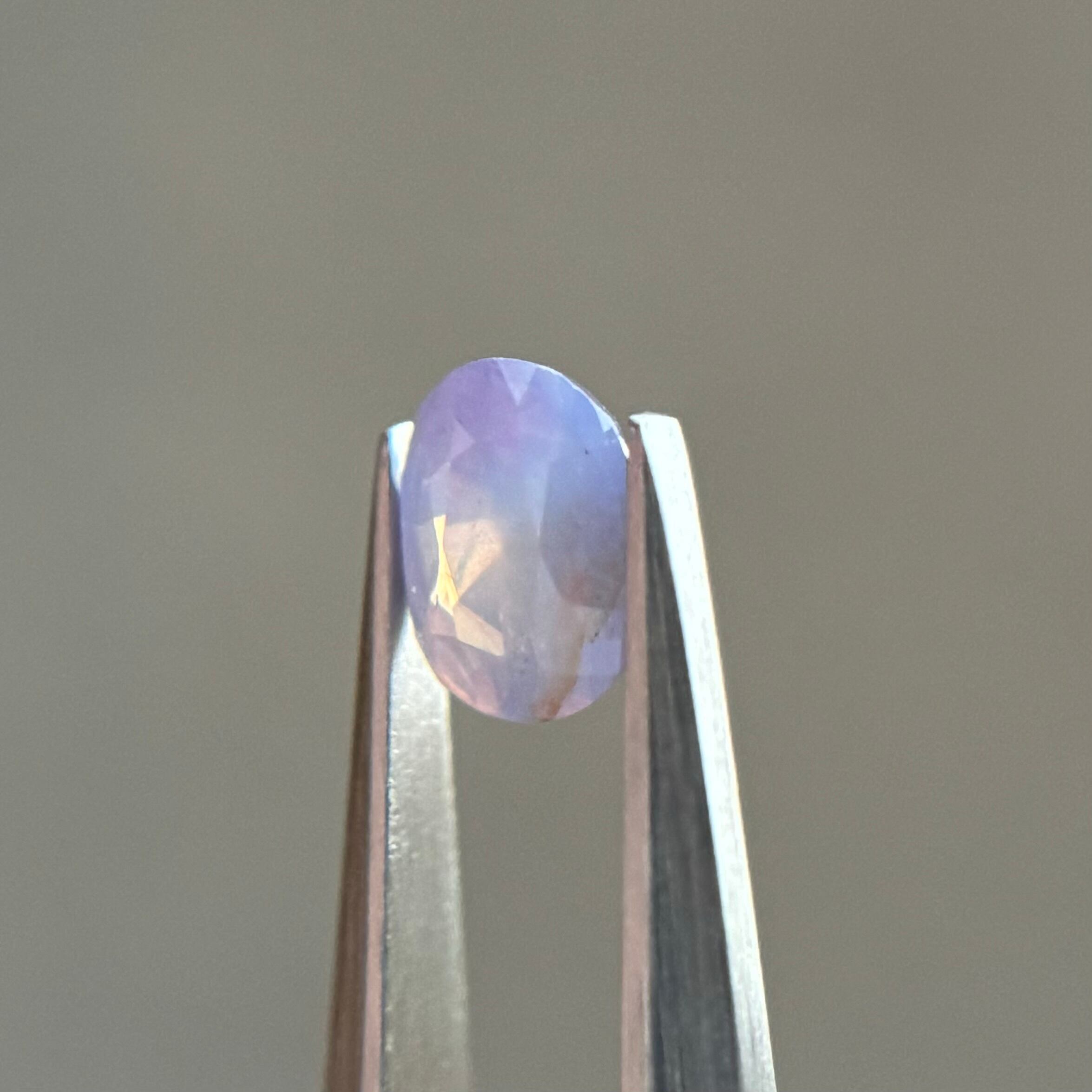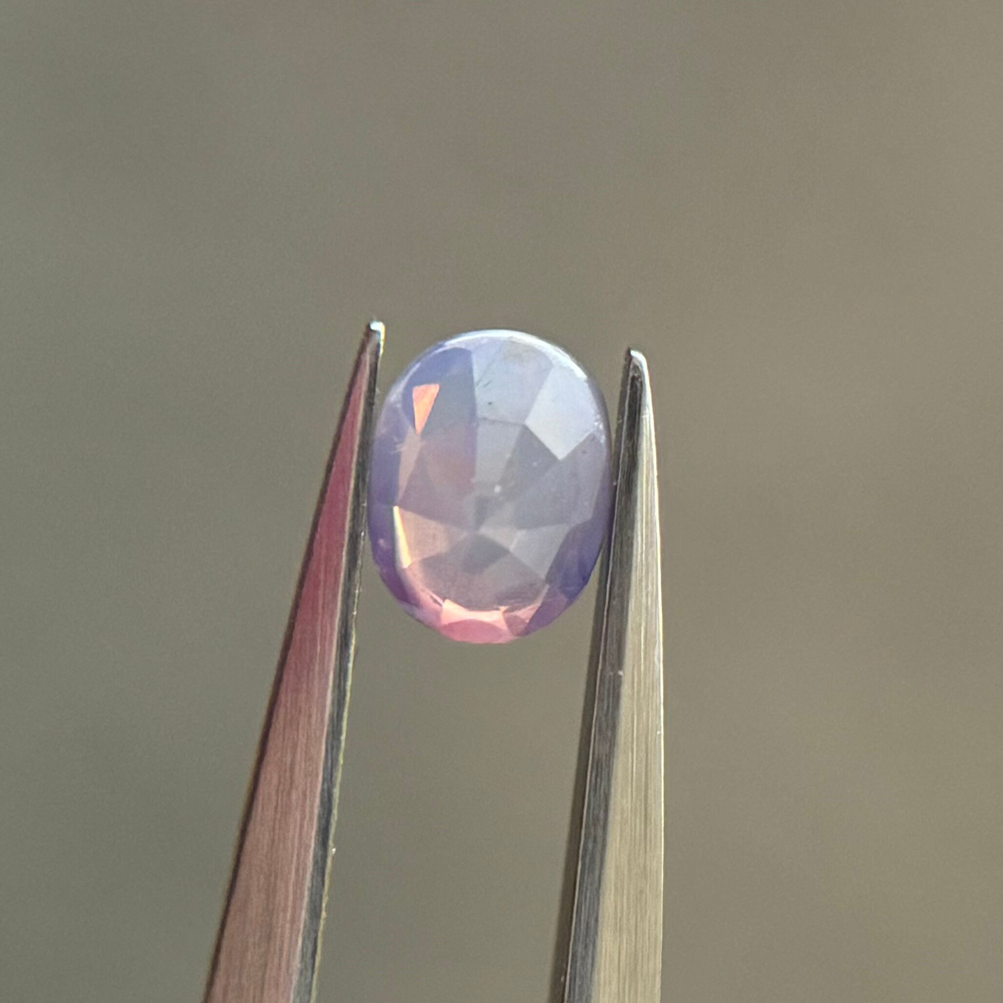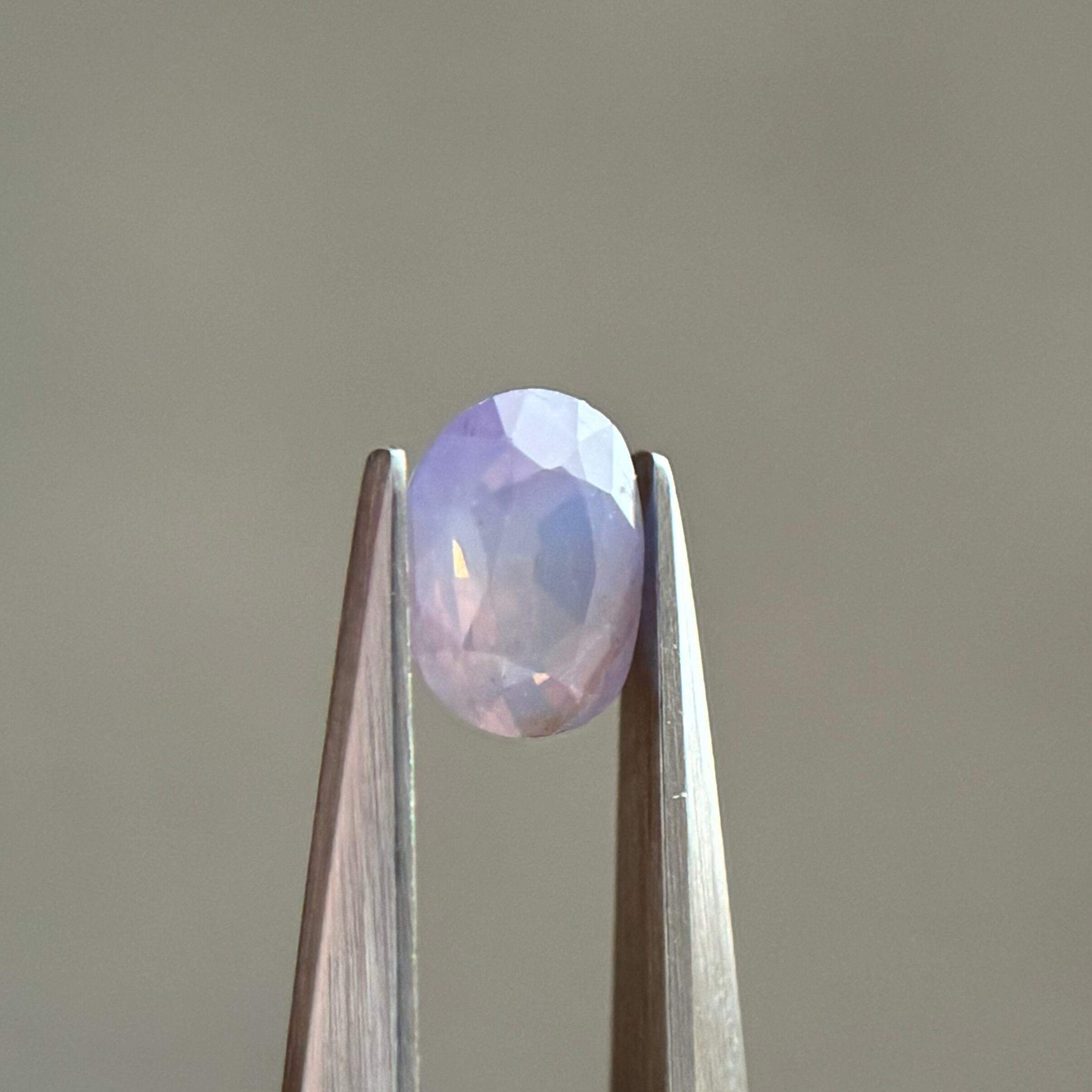 とにかくミルキー感が強いシルキーサファイアです。黄色のクラウド状インクルージョンがあるため、暗めの照明環境では暗さ強く出てしまうのですが、奥の方でまるで炎がゆらめくようなインクルージョンが楽しめます。また、明るい環境下ではベースの色が綺麗に出るため、色んな表情楽しめます