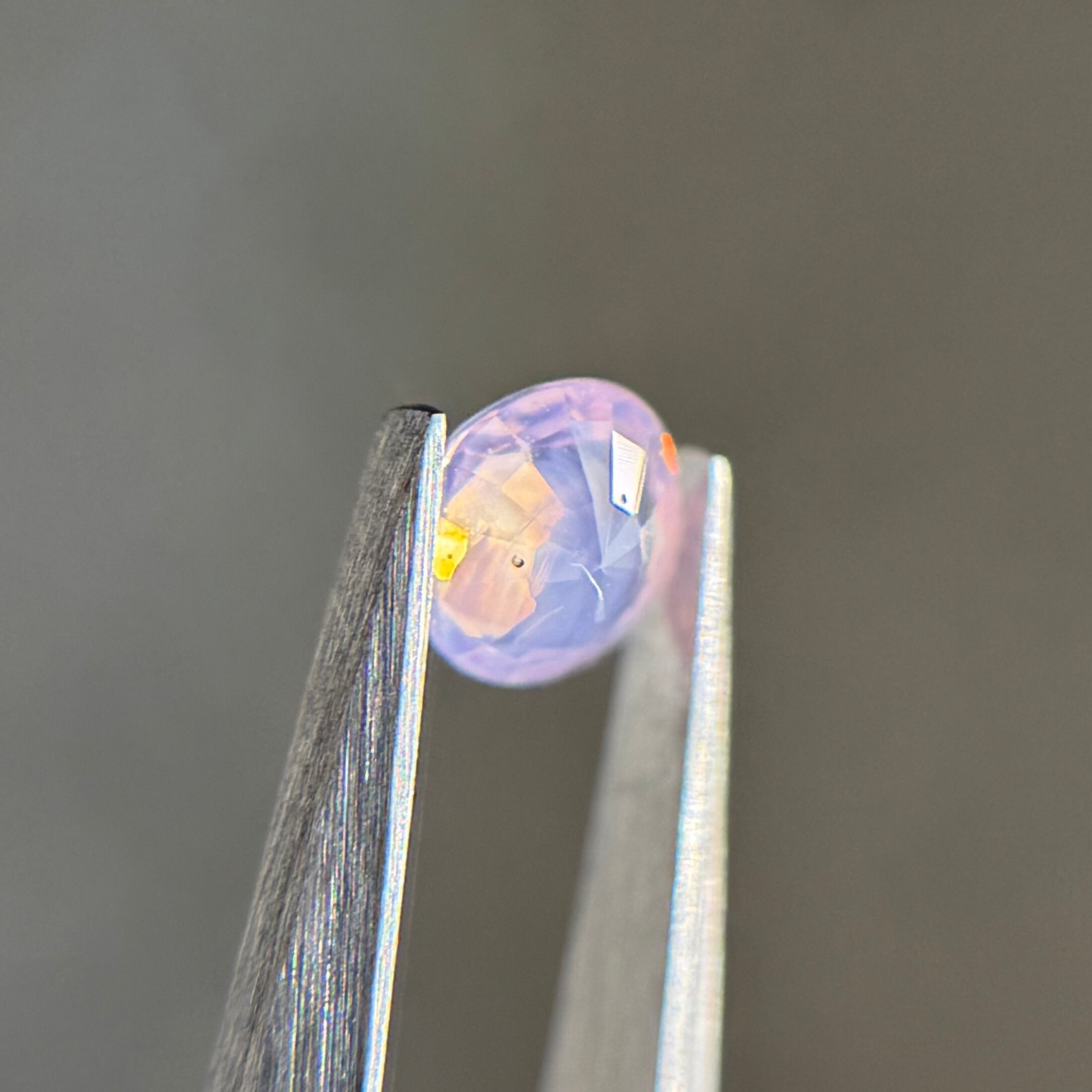 ふんわりとしたパープルピンクが美人さんなシルキーサファイアです。青みが強く、指の上などに置くとふわっと青色が現れます