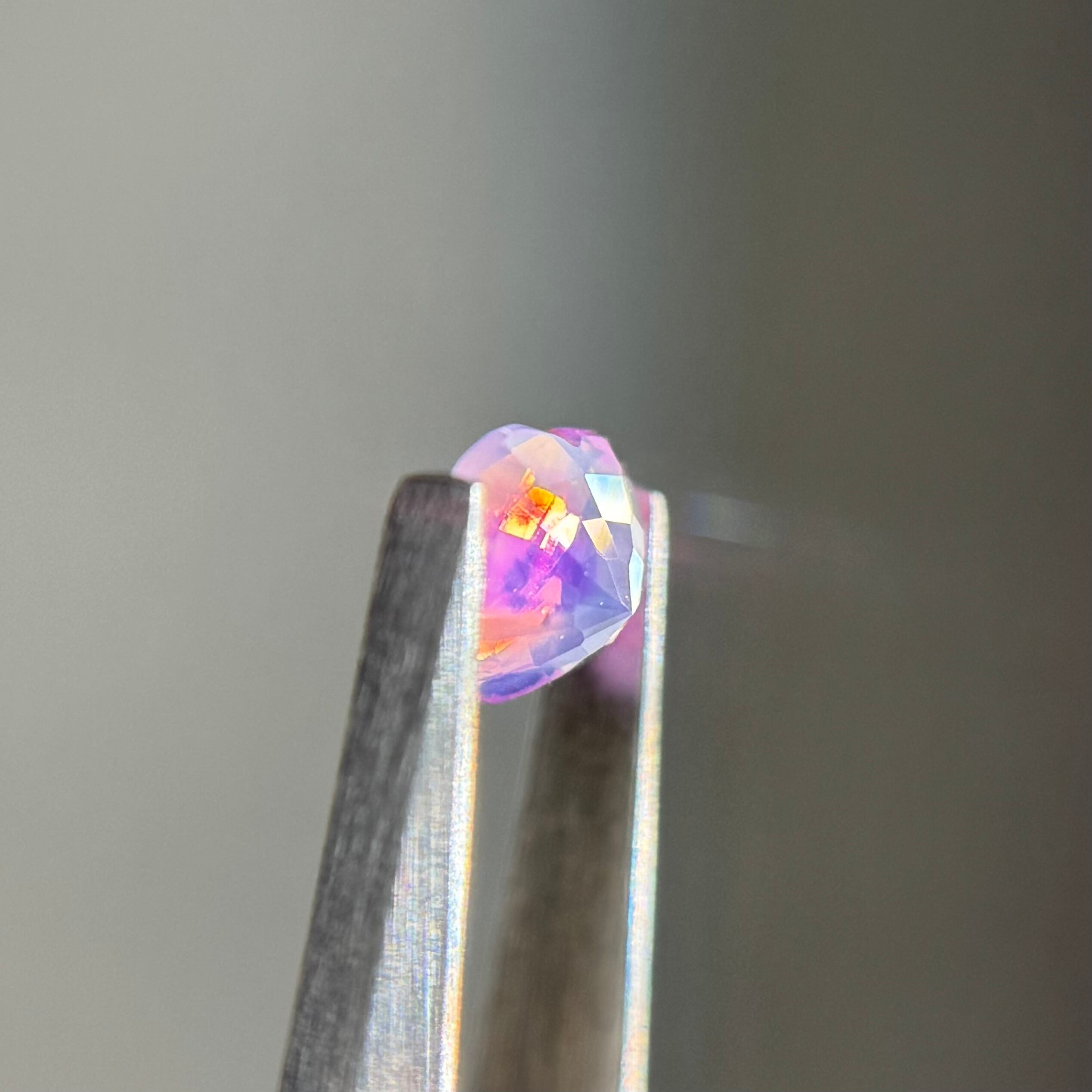 色んな色がギュッと詰まった、とにかく華やかなシルキーサファイアです。見る角度で全く違った表情が楽しめます。とにかく可愛いです(2回目)。アイクリーンです