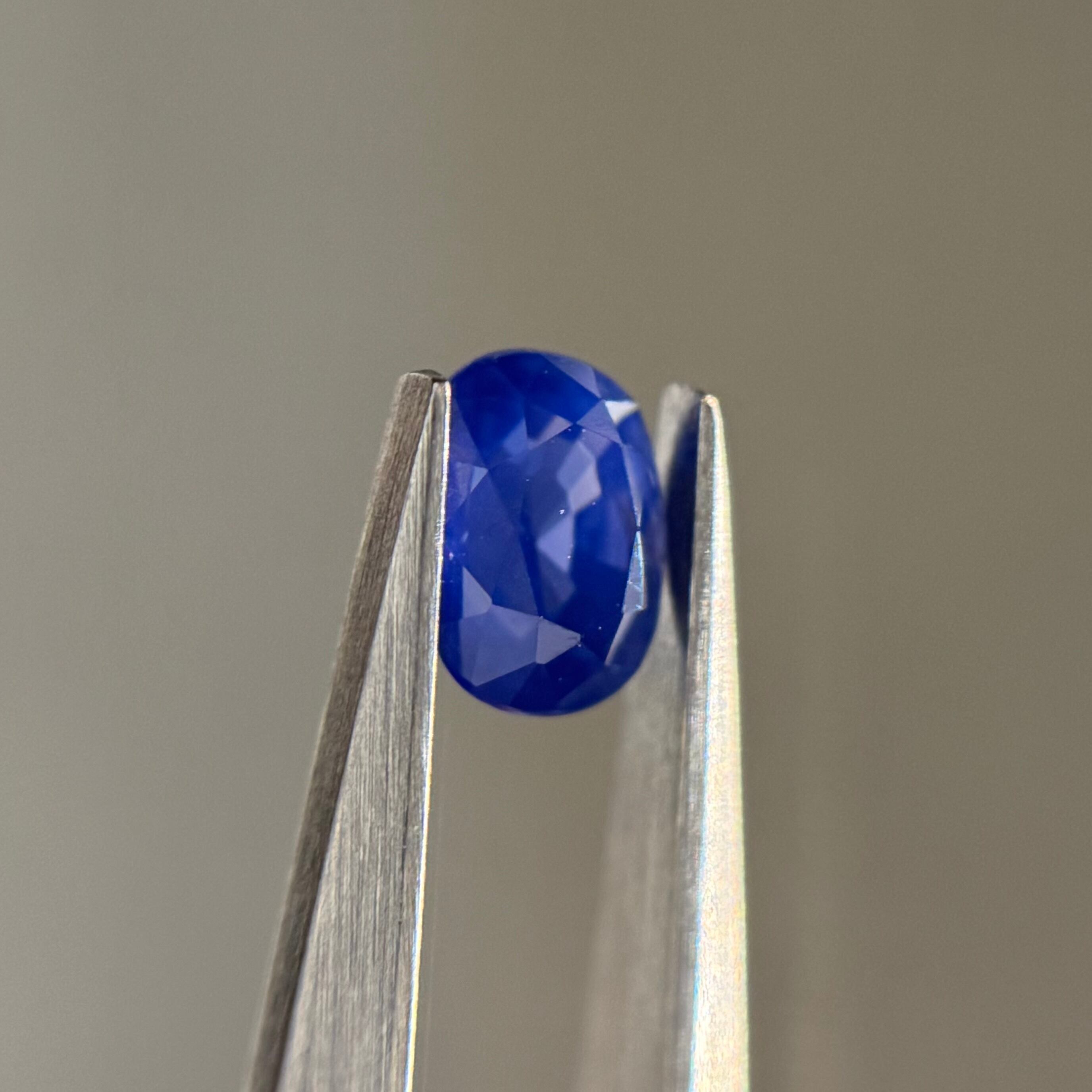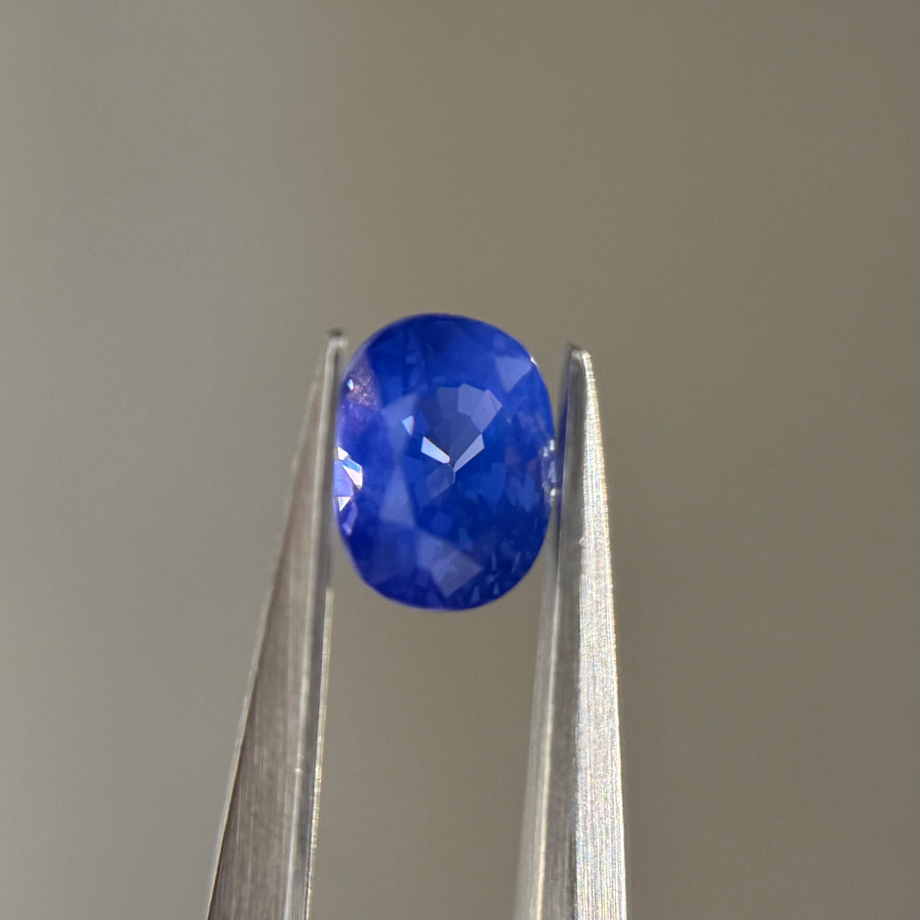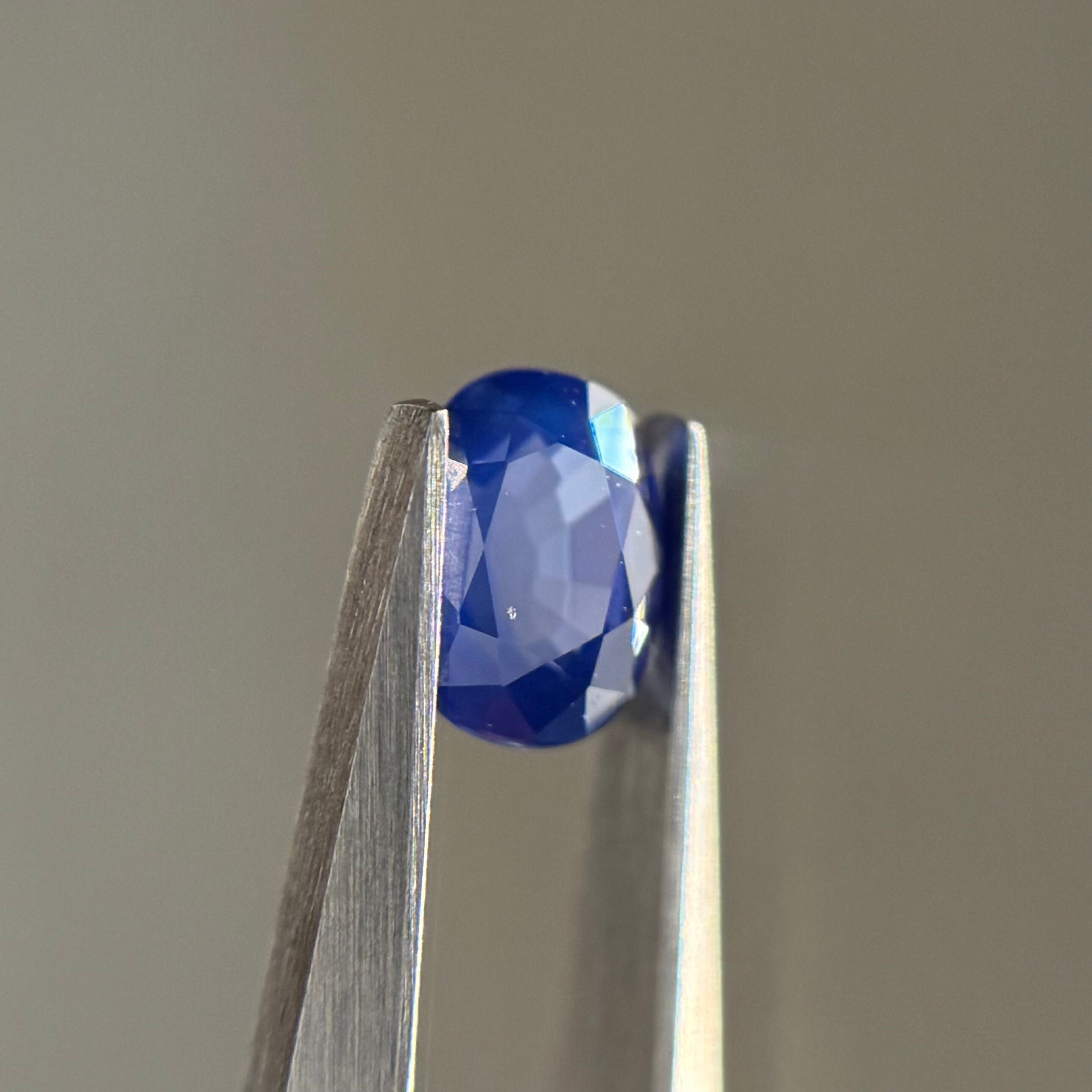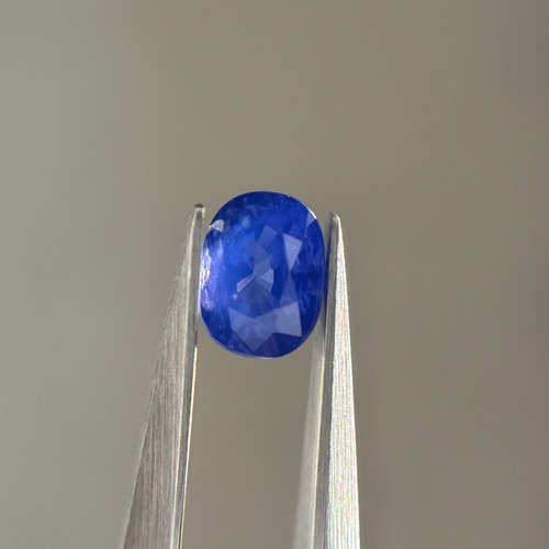 藍色に2色のテリが混ざり合う美しいシルキーサファイアです。パビリオンのインクルージョンはテーブルには響いておらず、テーブルからだとほぼルーペクリーンです