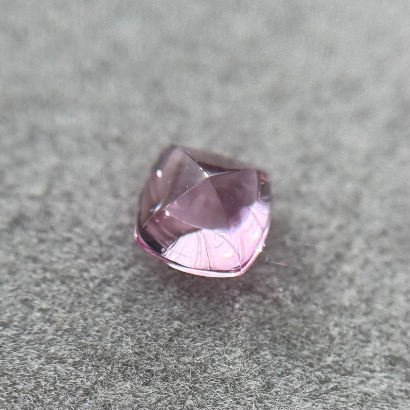 珍しいシュガーローフカットのサファイアです。王道ピンクカラーです。透明感が強く、まるでお菓子の様な見た目が愛らしいです