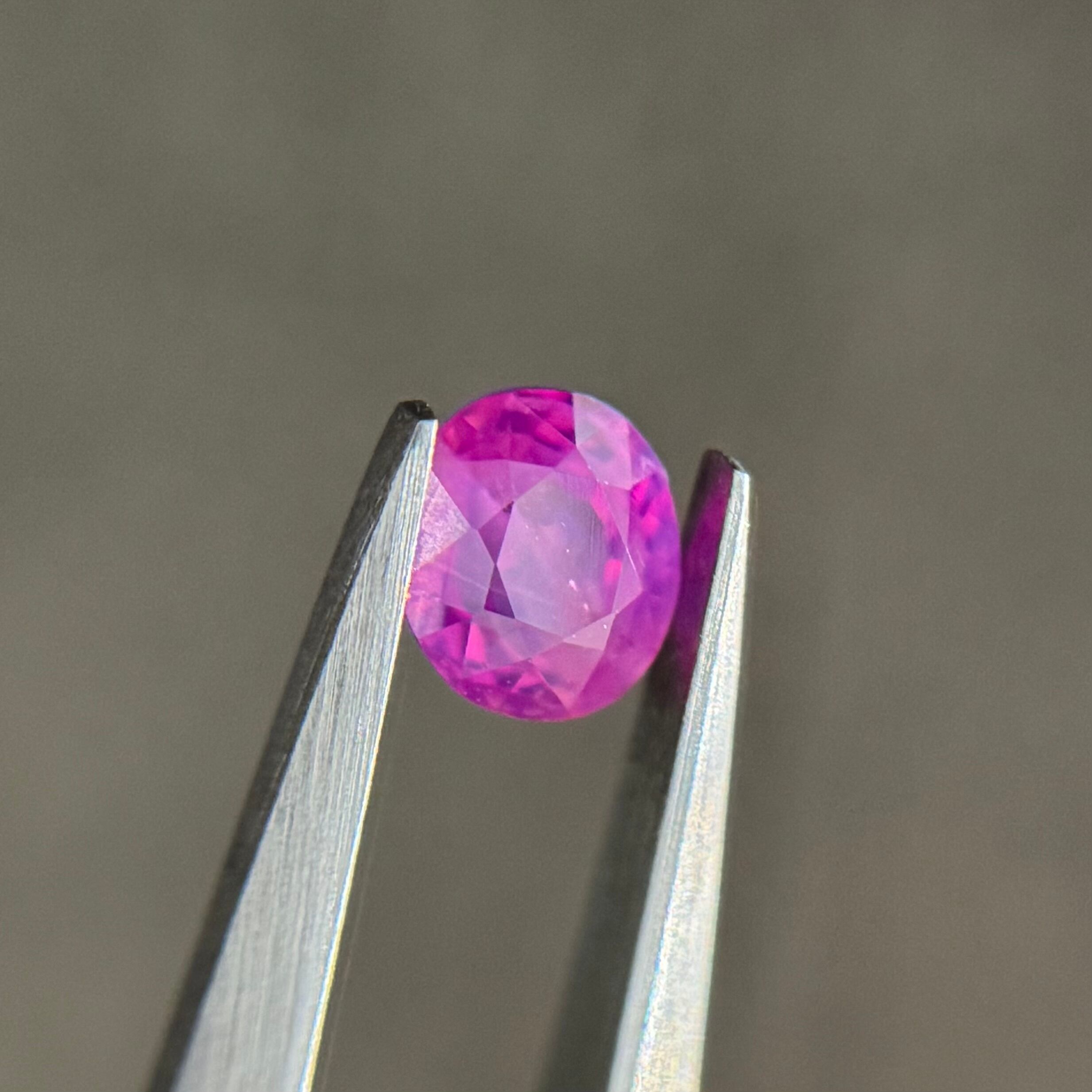 ぶどうの様なビビッドなカラーがジューシーなシルキーサファイアです。クラウド状インクルージョンのおかげでほんのりミルキー感もあります
