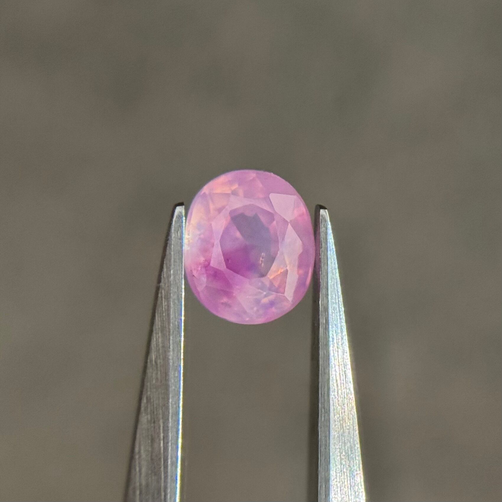 ミルキーな王道ピンク色に独特の色だまりが可愛いシルキーサファイアです。角度によってはなんだか♡が入っているようにも見えます。テリもしっかり感じられます