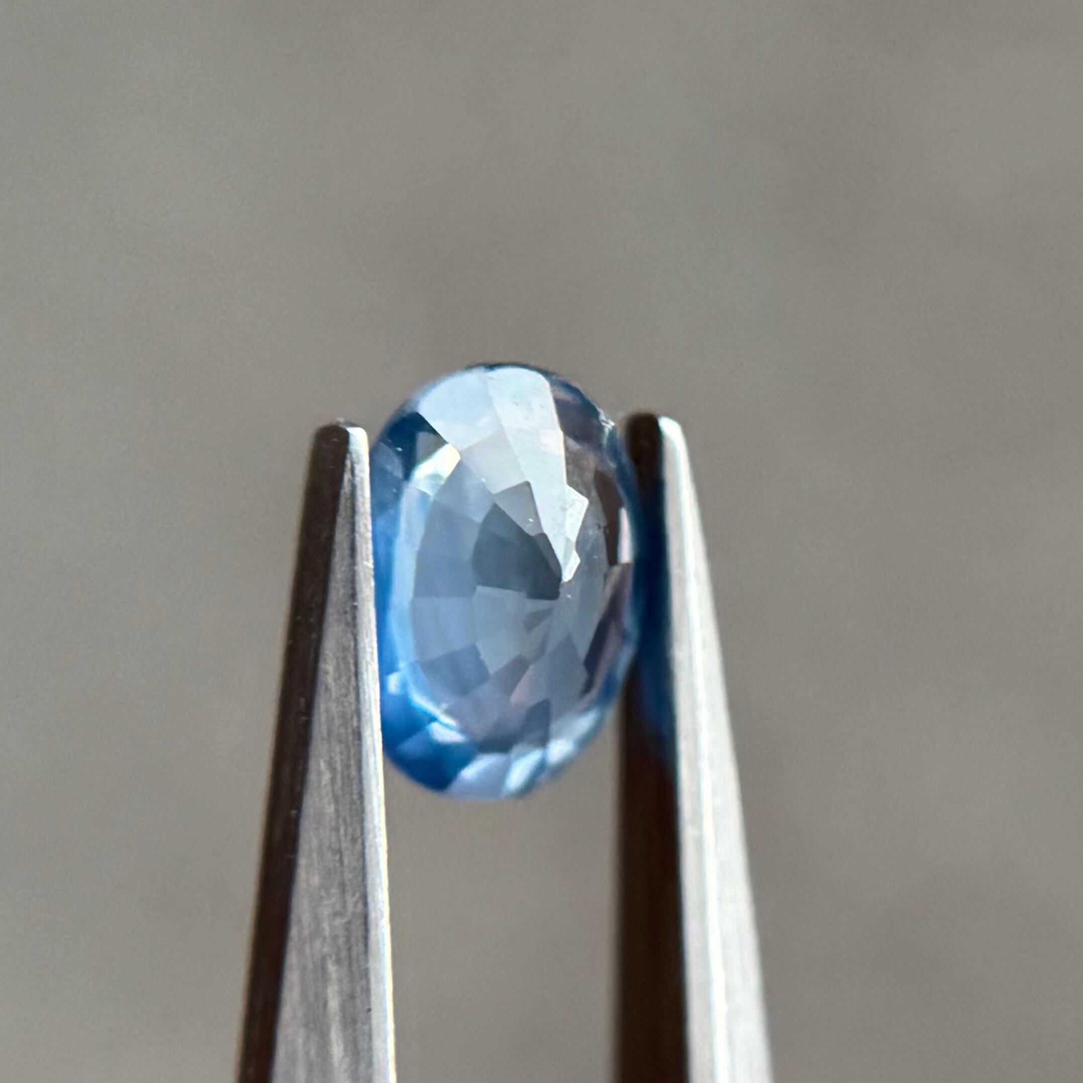 ほんのり緑とほんのり紫が感じられるニュアンスカラーが美しいシルキーサファイアです。すりガラスのようなシルキーの入り方も上品です。ほぼルーペクリーンです